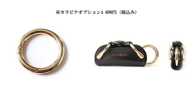 オプション自体に厚みがある為、カギの収納本数が減りますが、そこまでカギを収納しない方にはオススメです。本体と同じゴールドメッキが施されたカラビナなので、カラーバランスも調和がとれていて見た目にオシャレ♪