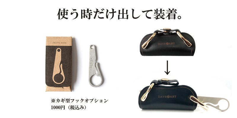 普段カバンを持たない方や、キーケースをポケットに入れる事に抵抗がある人がベルトループに引っ掛けて使えるオプションとなります。