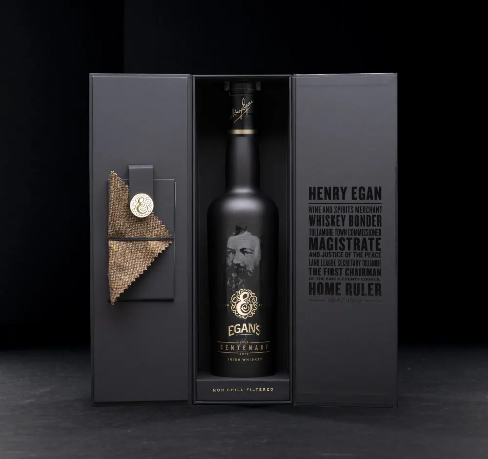 ヘンリー・イーガンはアイルランド独立の為に尽力したことでも知られており、ボトルには彼の功績を記念してアイリッシュ・ツイードのコースターがセットされています。