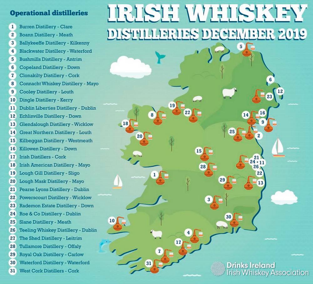 1980年にはたったの2か所まで減ってしまったアイルランドのウイスキー蒸留所でしたが、1987年に100年ぶりの新しいウイスキー蒸留所、クーリー蒸留所が操業を開始。その後各地で小規模の蒸留所が次々とオープンする流れが続いています。2020年現在、アイルランドには31の蒸留所があり、さらに22蒸留所が操業予定または建築中で、その勢いは「アイリッシュ・ルネッサンス」とも称されるほど。
