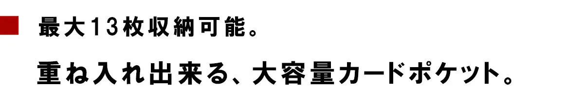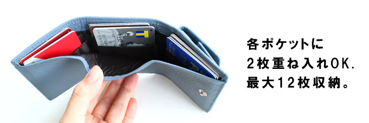 1つのポケットに2枚ずつ重ね入れられるので、メインポケットだけで12枚カードが収納できます。