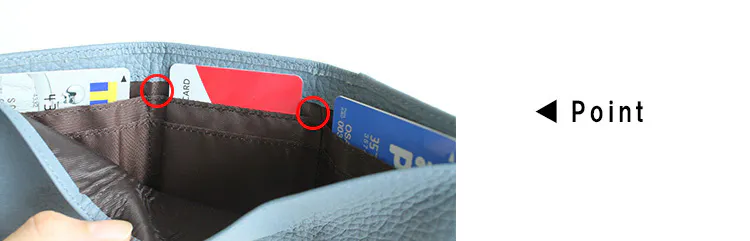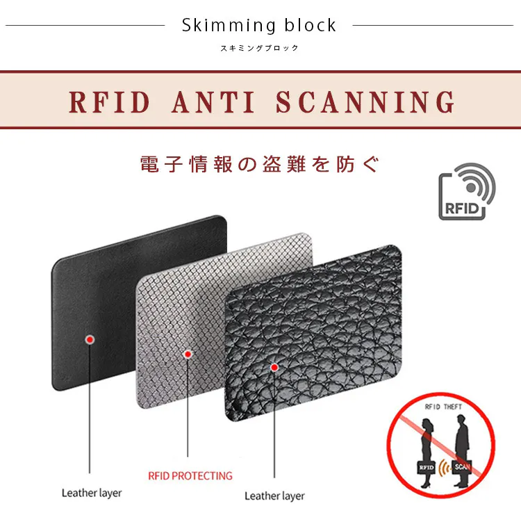 革の間にスキミングブロック効果のある素材を使用しているため、不正なスキミングからカードを守ります。