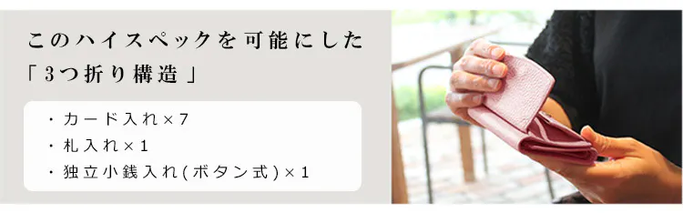 こういったことから、女性が持つキャッシュレスアイテムには、沢山カードが持ち歩ける高い収納力のミニウォレットが必要と考えました。