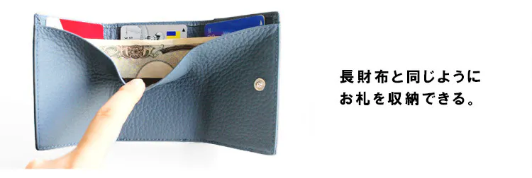 キャッシュレスアイテムは現金収納が省かれ、カード収納メインのアイテムが多く販売されていますが、当店のミニウォレットは “必要な機能を一切省かず小さくしただけ!”