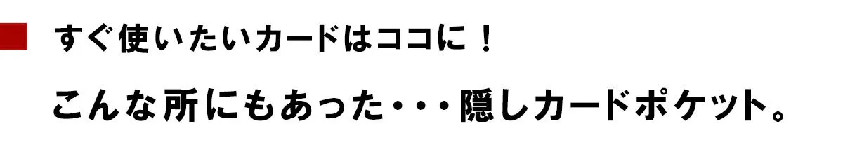 通勤・通学定期など、スピーディーにサッと使いたいカードは、小銭入れの裏の隠しポケットにIN!