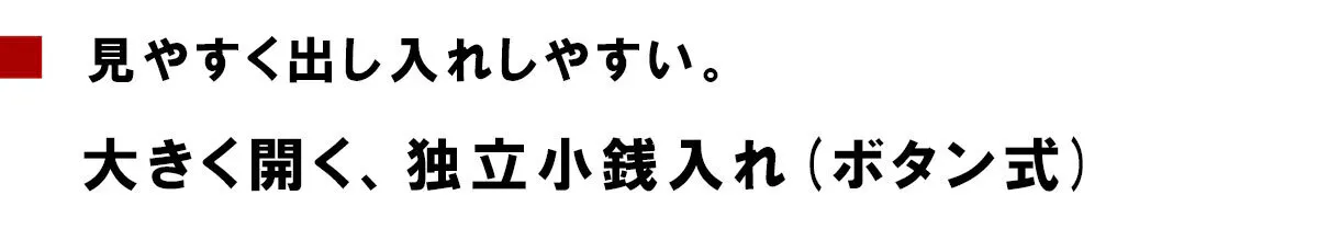 外付けの独立小銭入れは、マチ付きで大きく開き、見やすく出し入れしやすい構造なのが嬉しい。