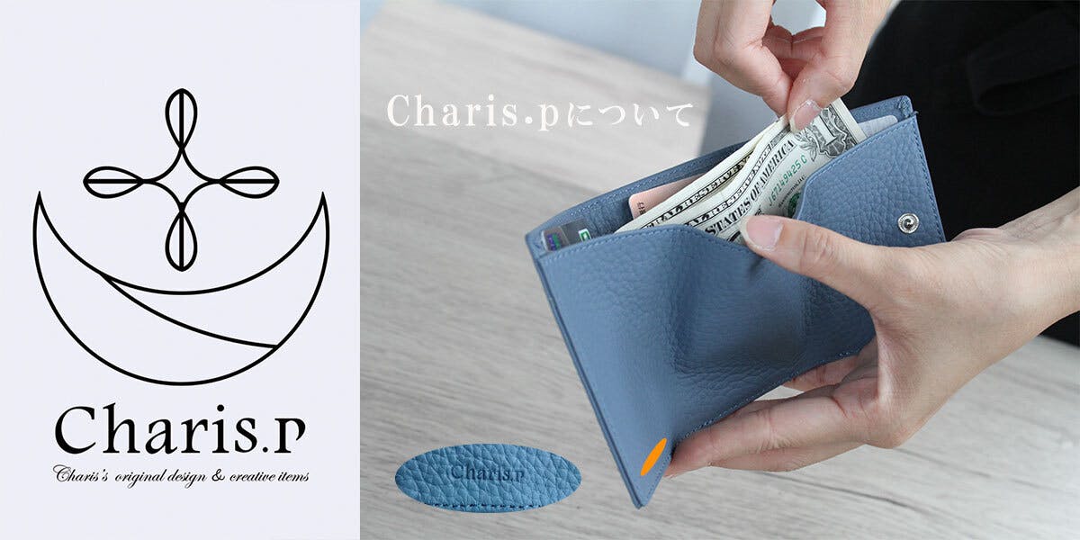 当製品にも、お財布の内側左下に小さく『Charis.p』 のロゴが入る為、ご了承ください。