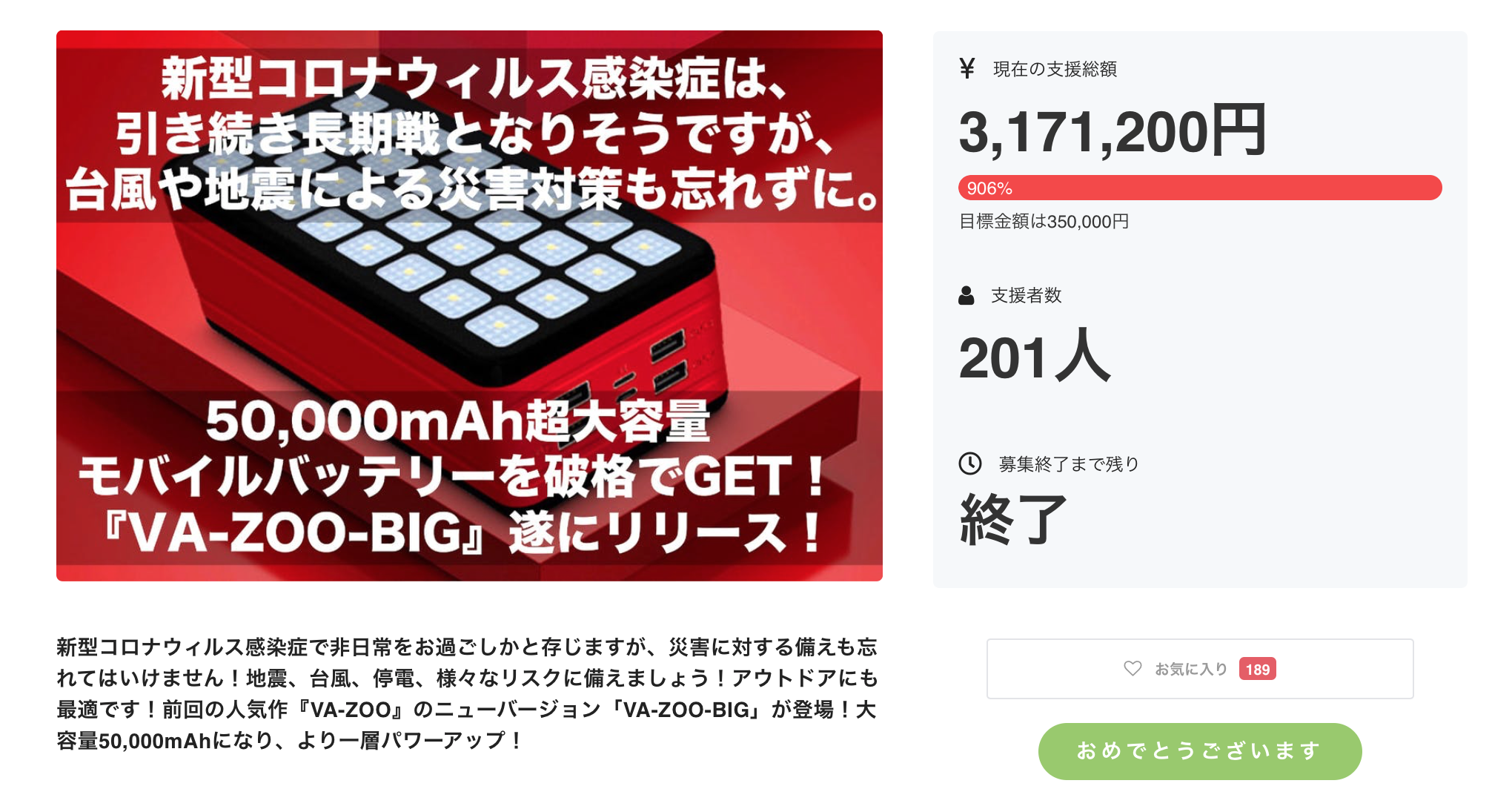 初期バージョンの『VA-ZOO』は、おかげさまでご好評をいただき、3回のプロジェクトで約700万円のご支援をいただきました。