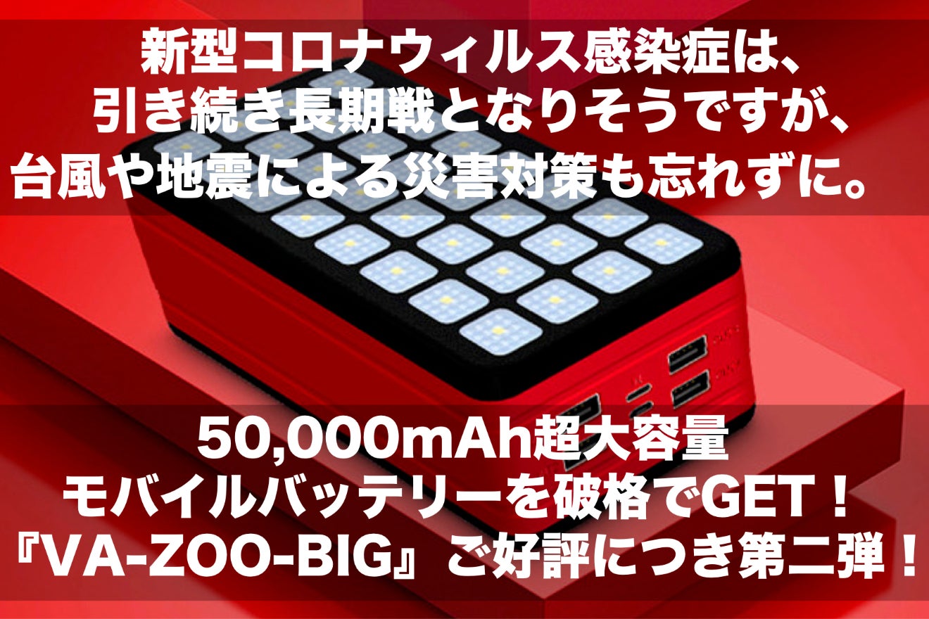 前回の『VA-ZOOプロジェクト』の際に、ご支援者様から貴重なご意見を沢山頂きました。ご支援者様の声にお答えし、この度、ポータブルサイズ範囲内で容量を最大限の50,000mAhまで大幅にグレードアップした『VA-ZOO-BIG』をリリース致しました!
