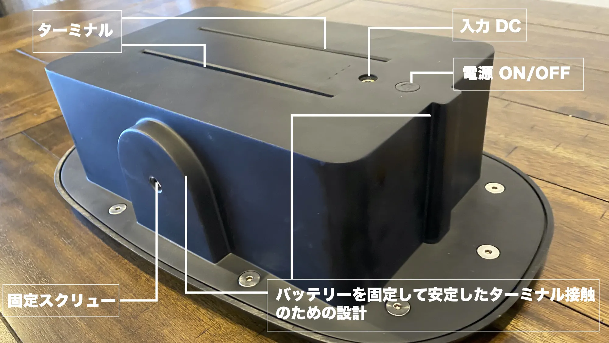 平時の時にカートリッジバッテリーを充電しておけば、非常時に役立ちます。ハウジングにあるDCポートから充電することも可能ですし、カートリッジバッテリーにもDCポートはありますので、どちらでも充電できます。
