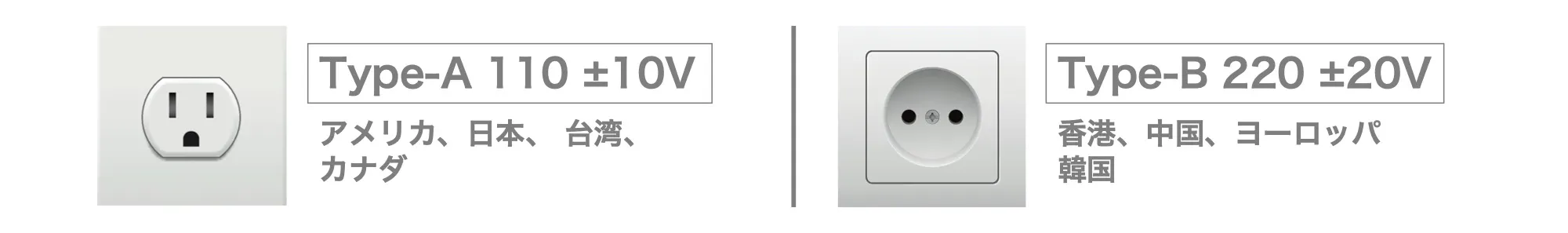 原則として、Type-Aの日本用のアウトレットコンセント製品をお届けさせていただきますが、Type-Bをご希望の方は、備考欄にその旨ご記載ください。どちらのタイプでも対応可能です。