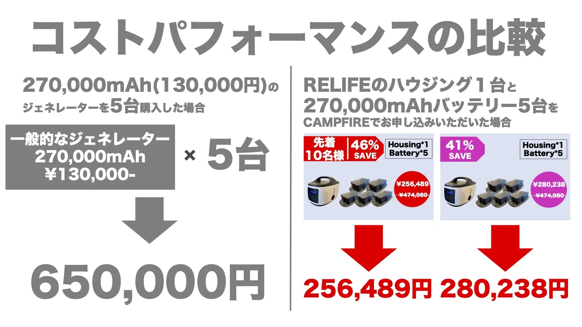 【RELIFE】世界初!!カートリッジ型超大容量バッテリー、270,000mAh超大容量で1,000Wの高出力の高スペック設計。