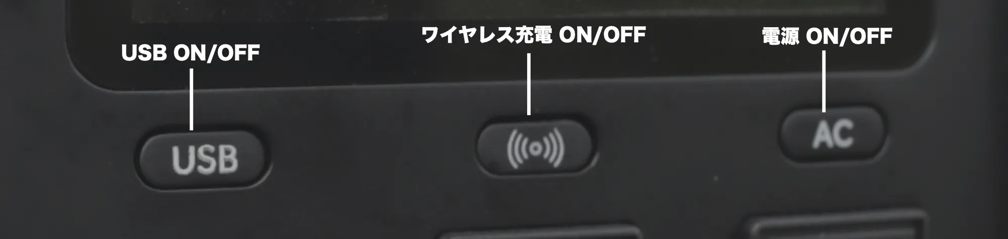 ディスプレイやコントロールボタンも、非常にわかりやすくシンプルなデザインにしました。AC、USB、Wireless、それぞれをご使用される時にそのボタンを押すだけです。もちろん全て同時に使うことができます。
