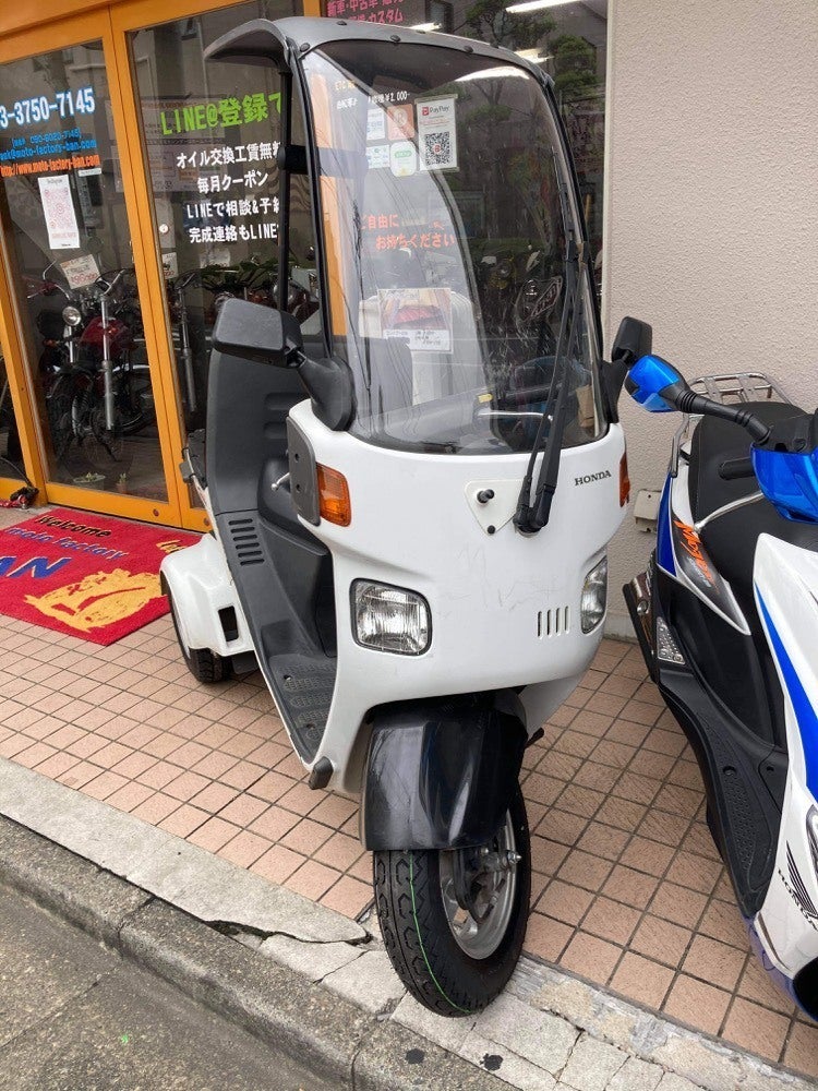 3輪バイクを新車で購入すると約60万円程するのですが、知り合いのバイク屋さんに問い合わせしたところ、運よく最近整備したばかりで中古車として売りに出されようとしていたものを32万円程で見つけることができました。