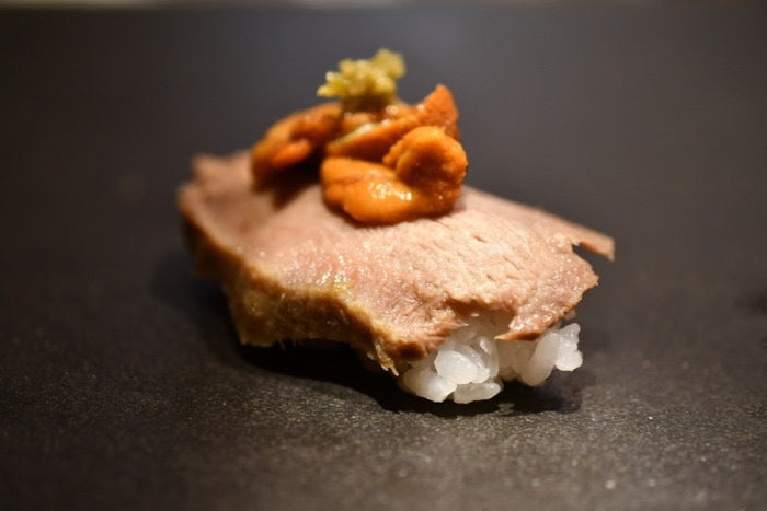 熟成肉とうにのコラボレーションお寿司”うにく”を開発し登録商標を持つ店舗です。