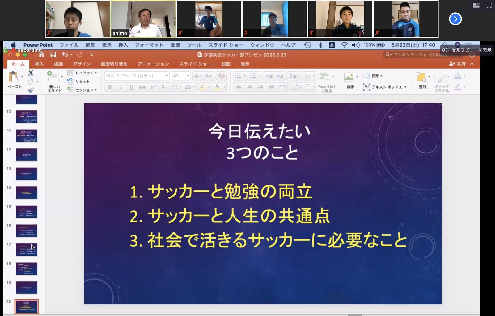 山口県内の高校サッカー部と霜田正浩監督が参加したオンラインミーティング