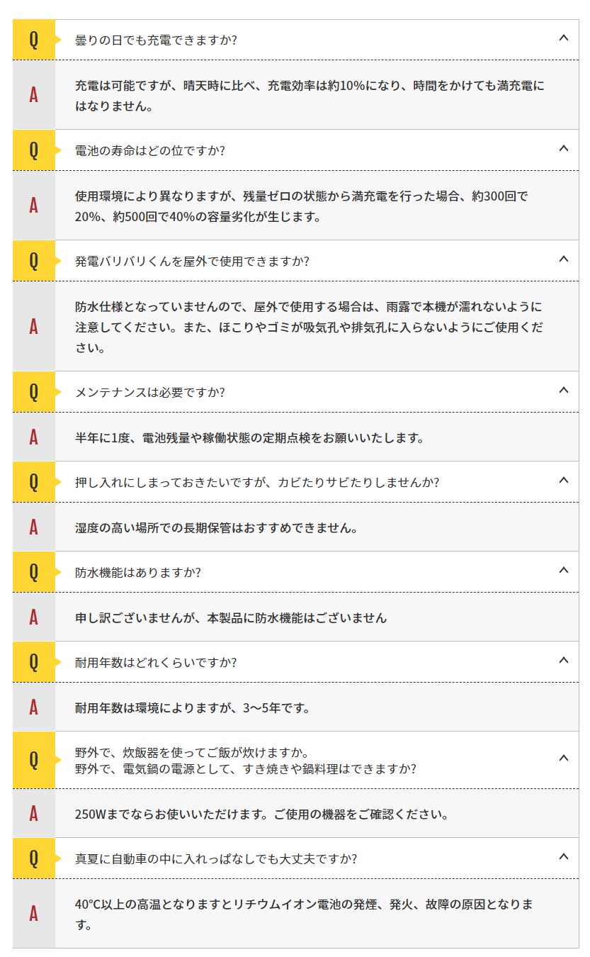 停電時など家庭用電源が使用できない状況でも、発電バリバリくんを開けばすぐに充電が可能。太陽光で充電しながらの電源利用もできるので、キャンプなどのアウトドアでも活躍します。
