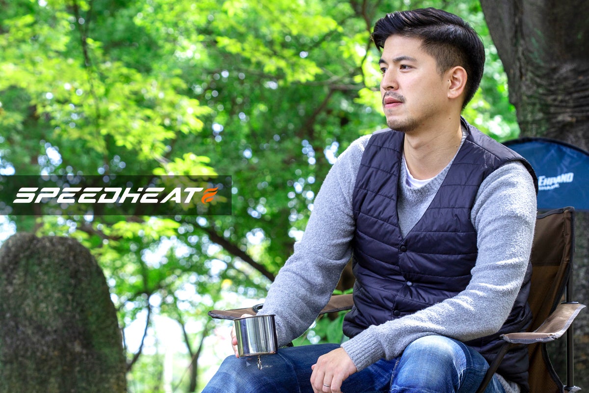 薄いのに温かい「スピードヒート」は、ベスト型だから腕の動きを妨げないため準備や片付けといった作業時にも野暮ったさはありません。