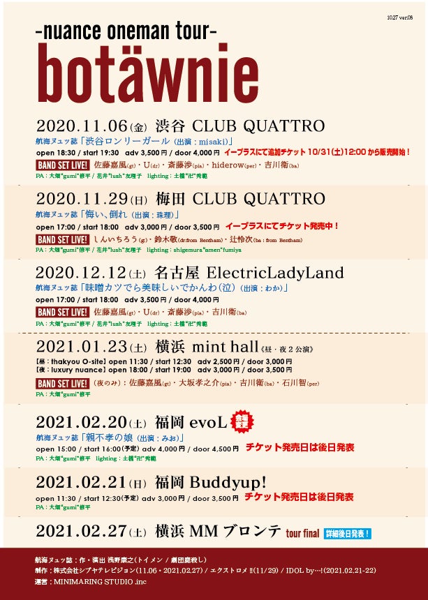 nuance oneman tour「botäwnie」special showcase -okaeri-