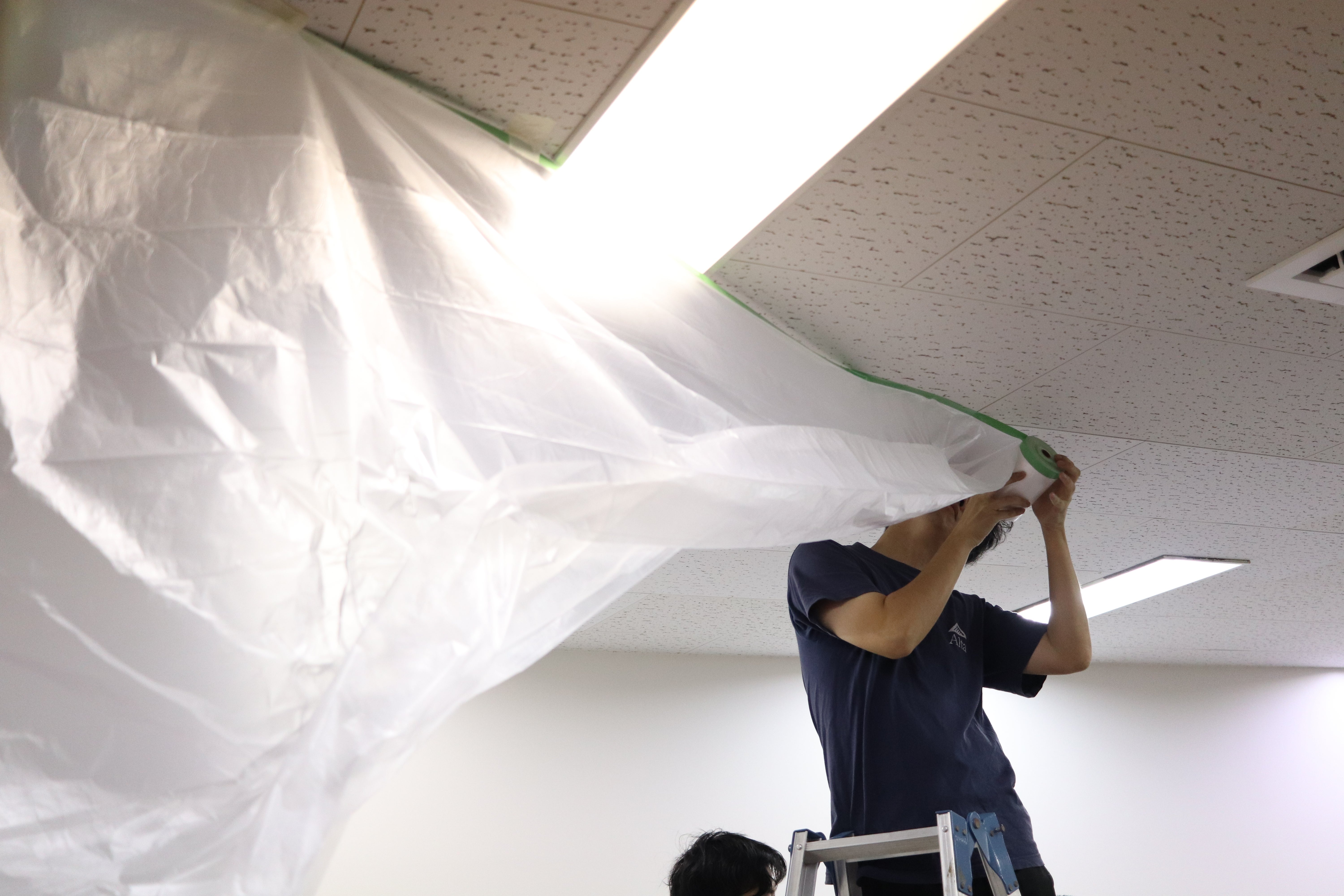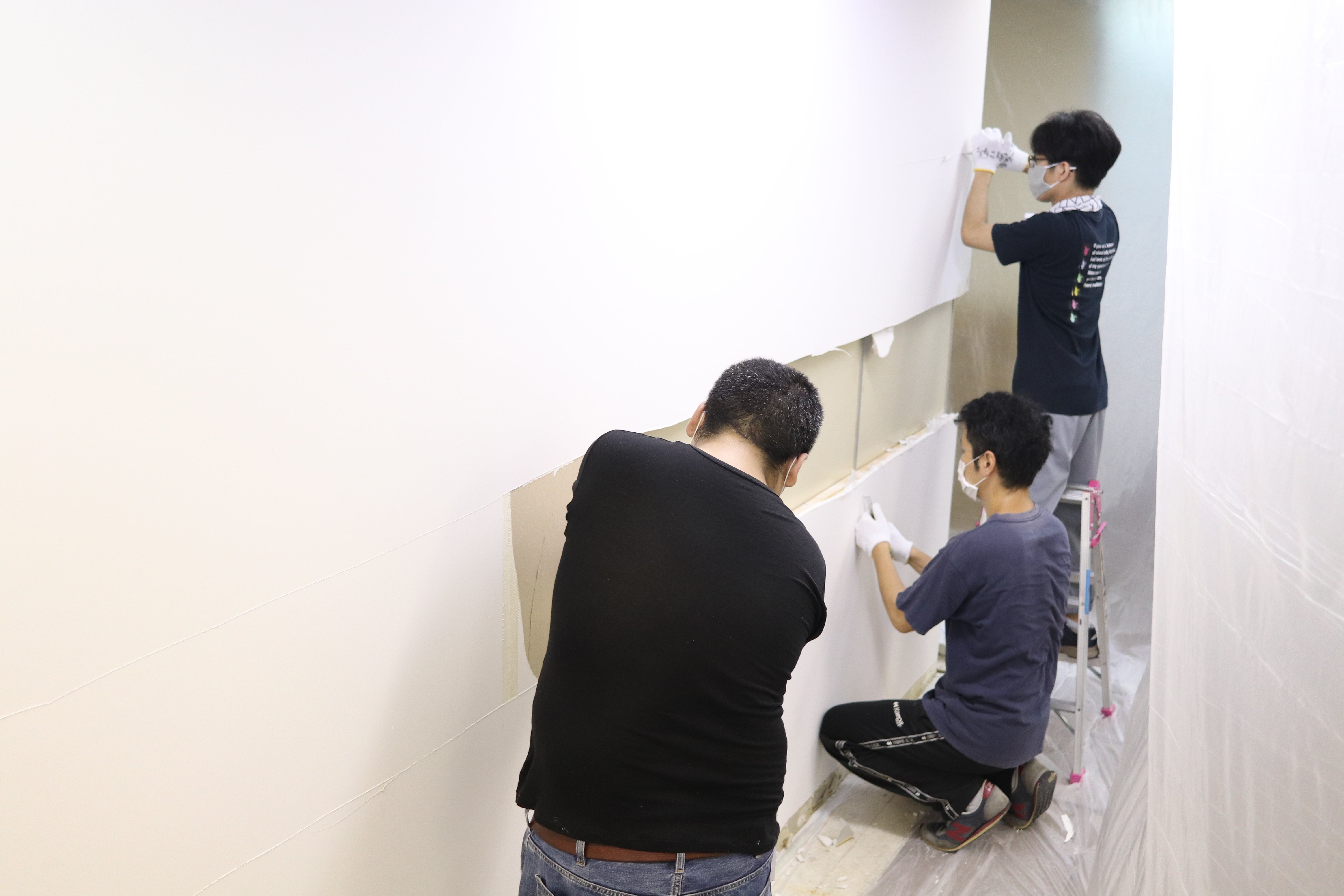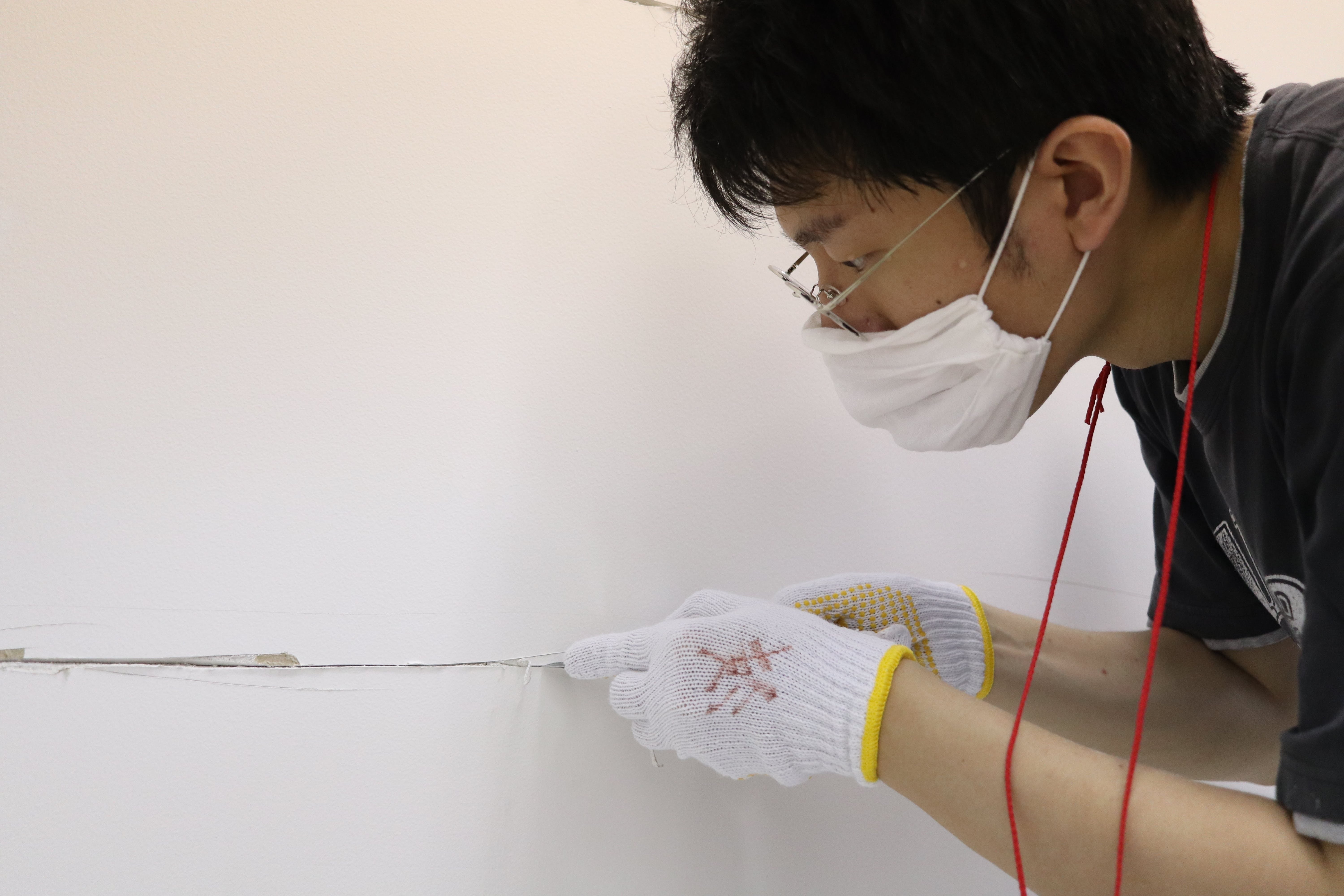 壁を壊す前には養生シートを設置して部屋が汚れることを防いで、