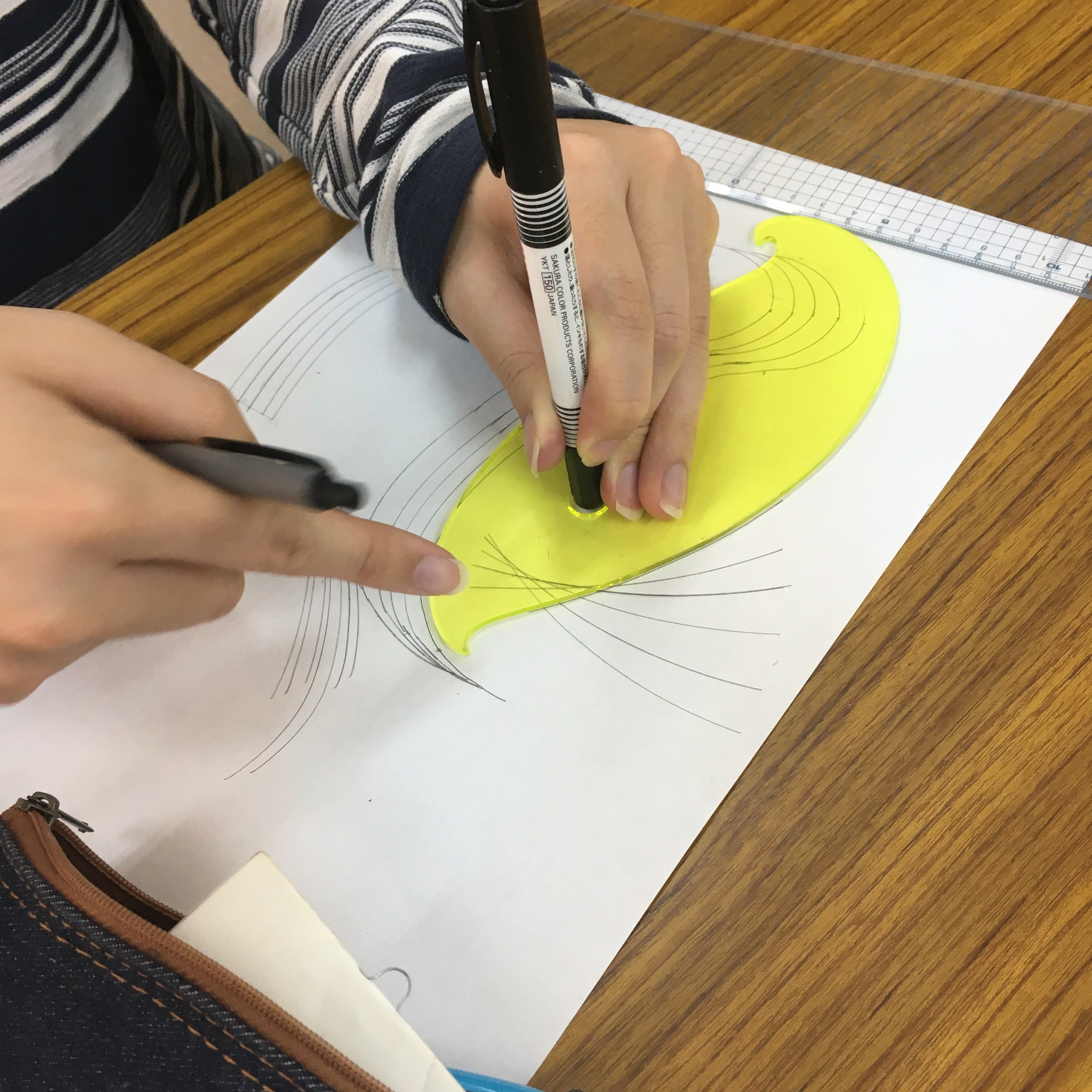デザイン講座では平面構成や色彩構成など、主にグラフィックデザインの基礎理論をワークショップで実際に手を動かしながら体験的に身に着けています。