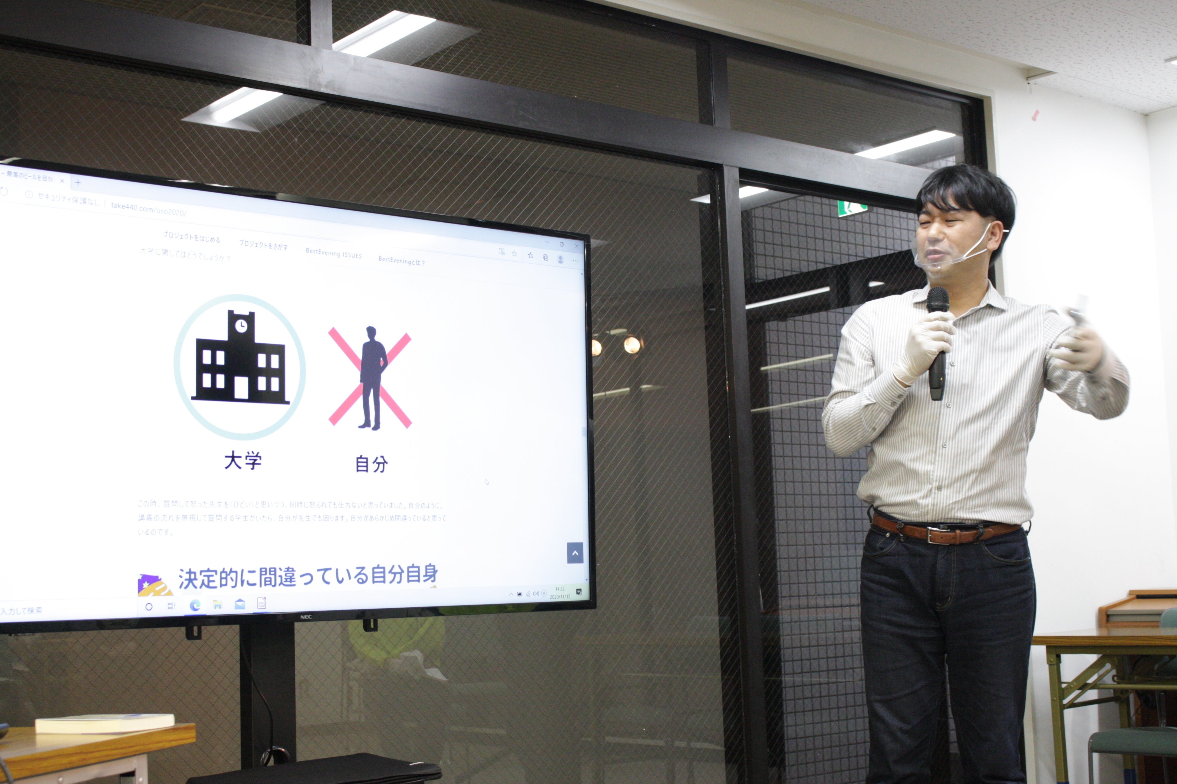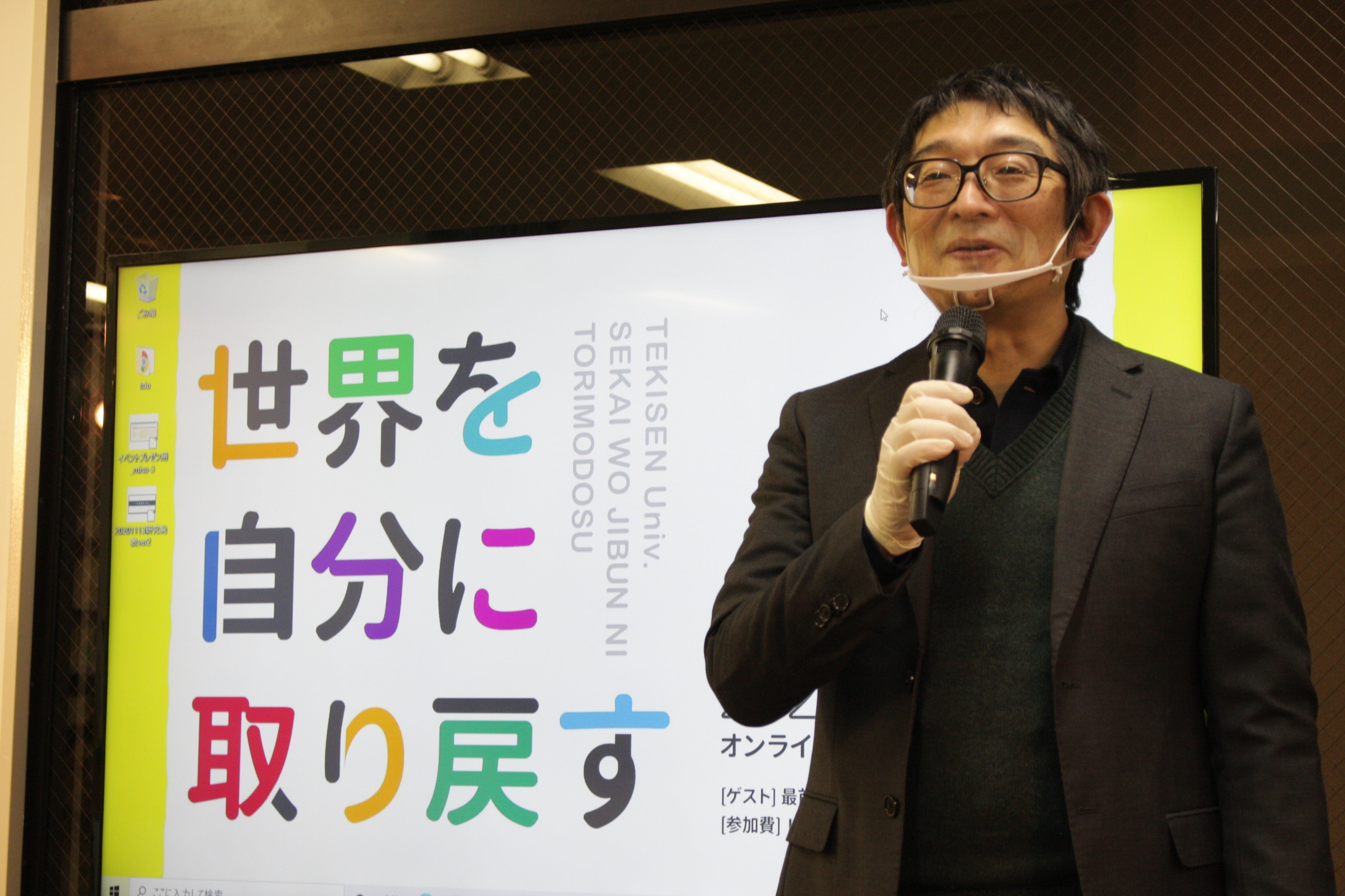 イベントは、まず代表の朝倉景樹から、TDU・てきせん大学新設の経緯をご説明し、ごあいさつをしました。