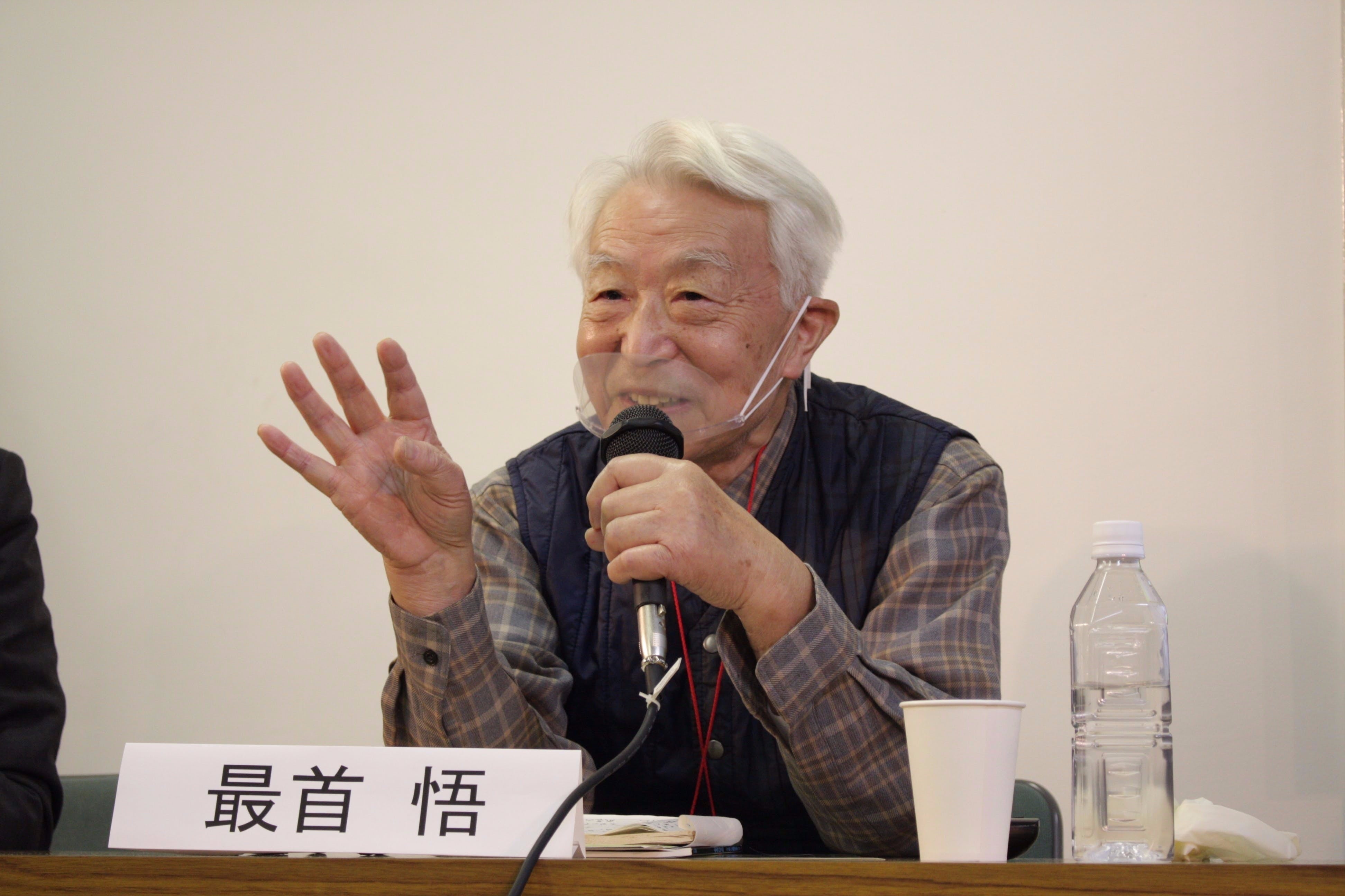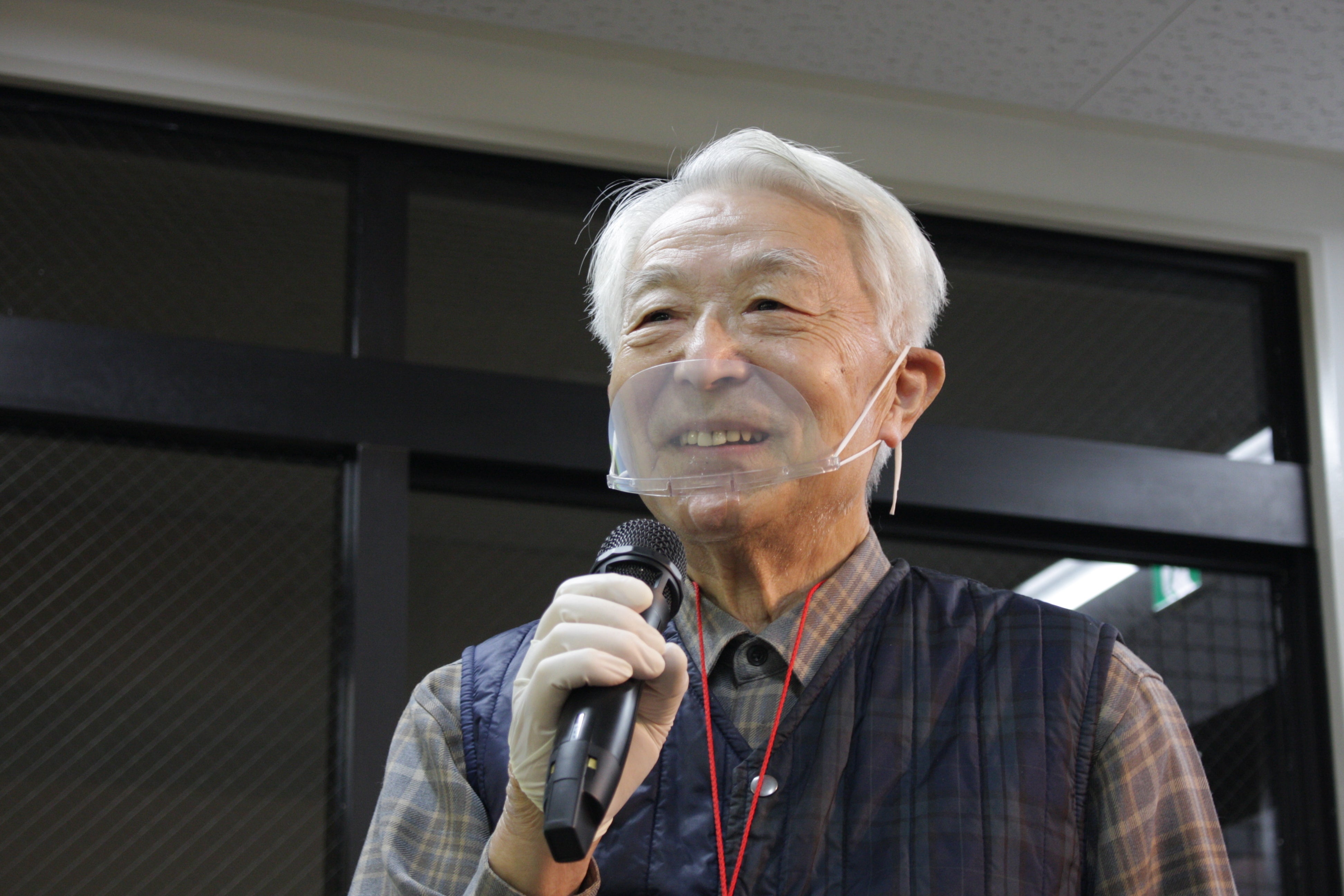 その次は、イベントのゲストであり、前身のオルタナティブ大学時代からアドバイザーとして、20年以上学生たちの学びにお力添えをいただいている思想家・最首悟さんから、オープン記念のご祝辞もいただきました。