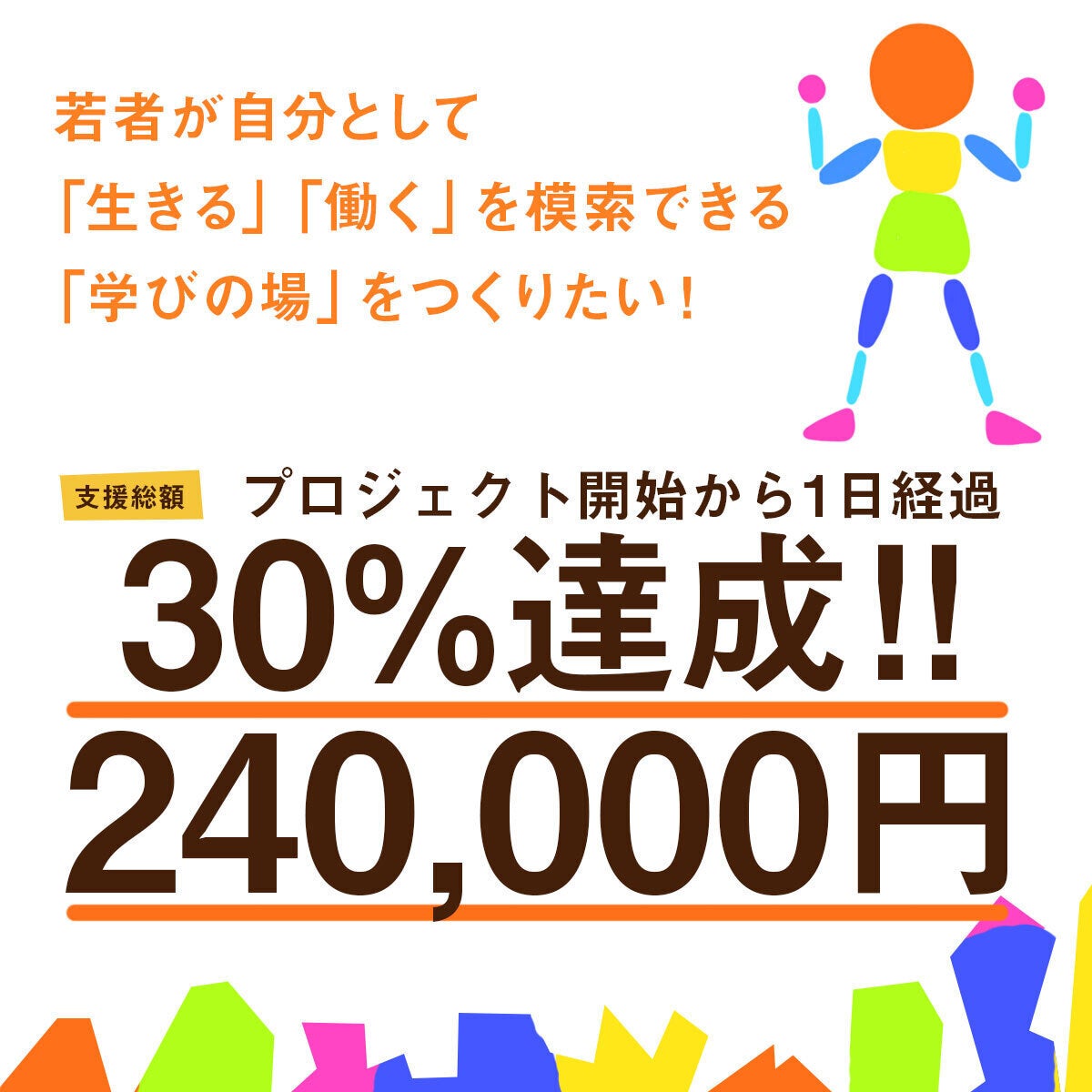 こんばんは!若者たちのための全く新しいオルタナティブ大学設立のためのクラウドファンディングが、開始から1日で、なんと30%を突破しました!現在はさらに増え、300,000円を突破しました!予想以上のご反響、応援をいただいて、驚きながら、嬉しさと有難さでいっぱいです。ありがとうございます!!不登校・ひきこもりなどを経験した若者たちが、自分と向き合いながら学び、自分の生き方・働き方を創っていける場を形にするため、学生たちもスタッフの朝倉もさらに頑張りたいと思いを新たにしました。どうかこれからも皆さまのご注目と応援、拡散をぜひよろしくお願いします!