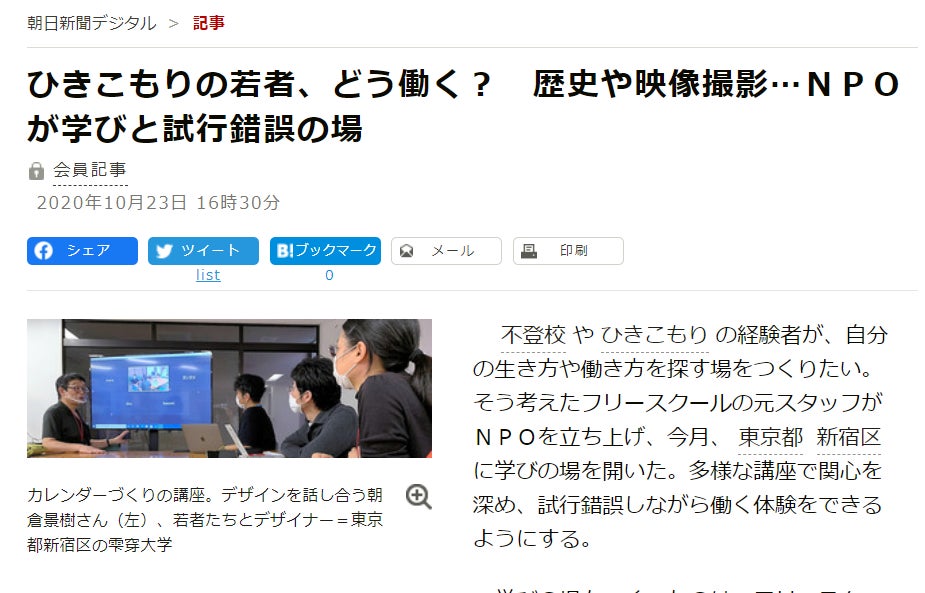こんばんは! クラウドファンディング学生サポートチームです。昨日の朝日新聞の夕刊でも、TDU - 雫穿(てきせん)大学の設立と活動、クラウドファンディングのことが紹介されました! 10月23日付の夕刊です。記事をみてくださった方からもご支援いただいています。本当にありがとうございます!朝日新聞デジタル会員限定のようですが、Web版もあります!https://www.asahi.com/articles/DA3S14669273.html現在、ネクストゴールに挑戦中です。「働く」「生きる」を試行錯誤できる学びの設備をさらに整え、経済的に困難を抱える学生への支援も拡げていくため、引き続き皆さまのご注目・応援をどうぞよろしくお願いいたします!TDU - 雫穿(てきせん)大学学生クラウドファンディングサポートチーム