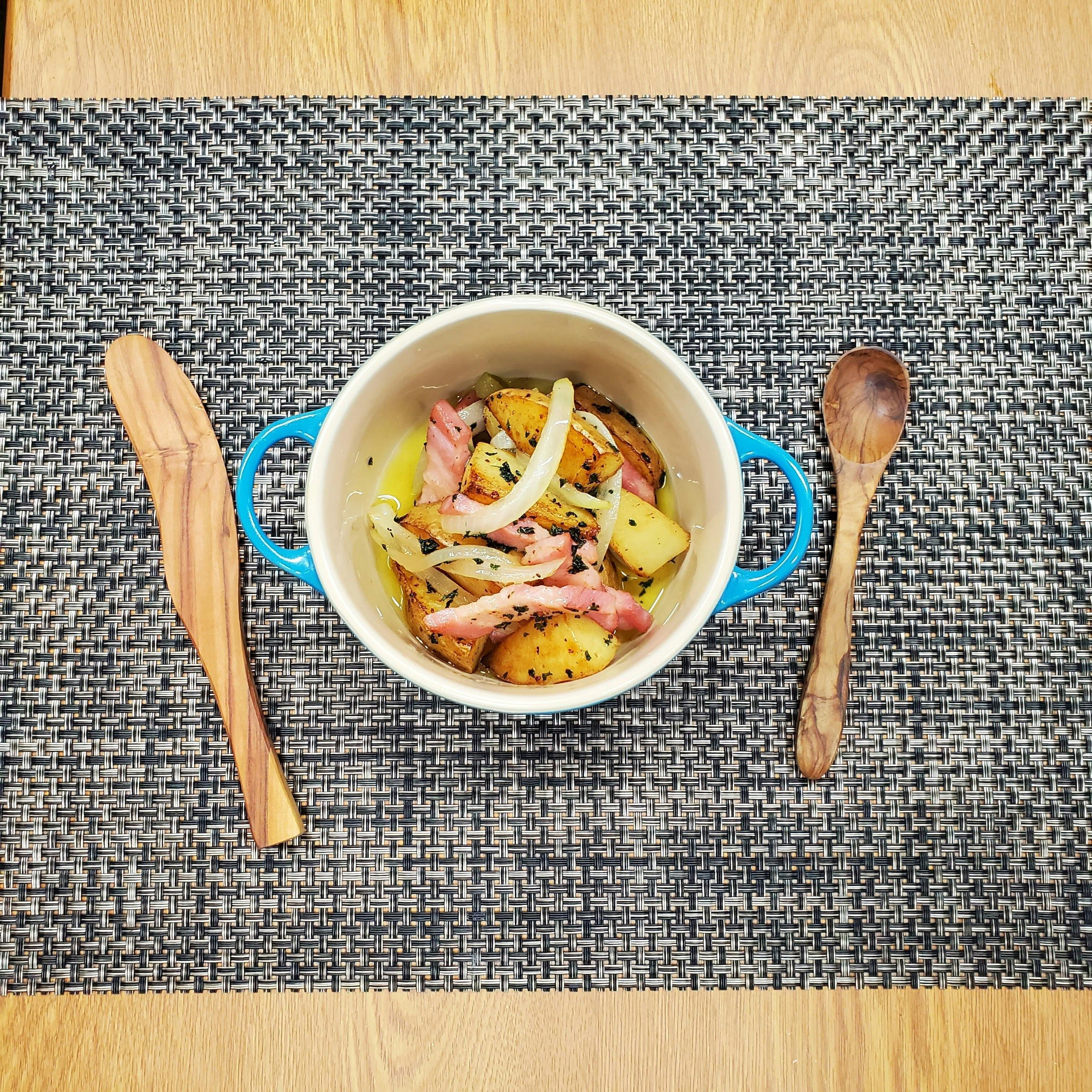 ベーコンの塩気とジャガイモの甘味をコク深いオリーブオイルが美味しくまとめた、人気の一品です。