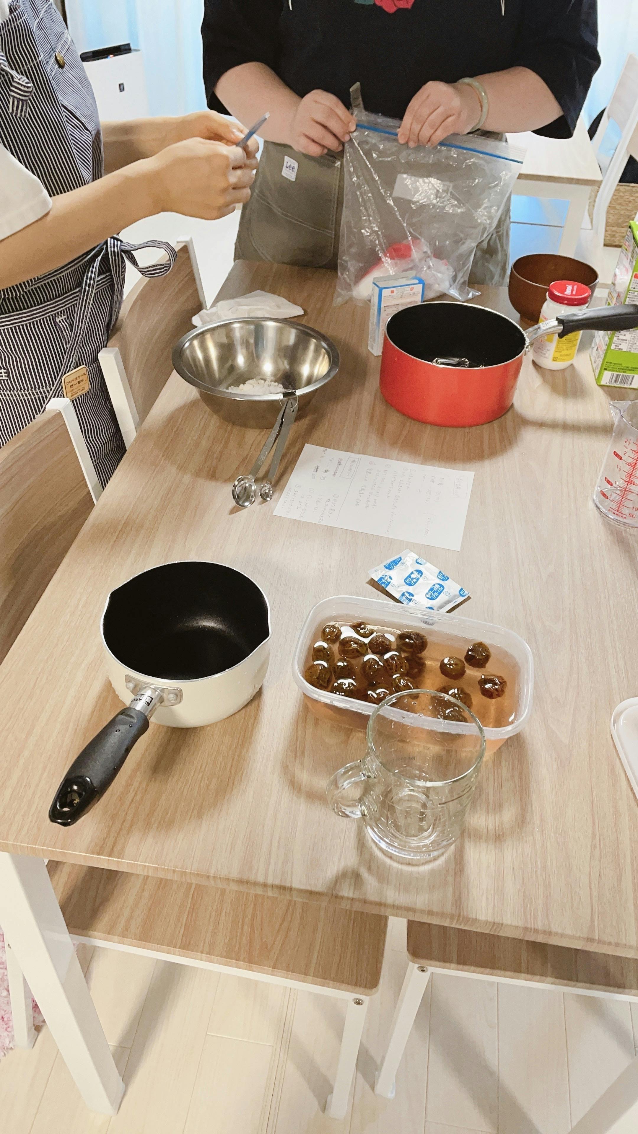 手作りをした梅シロップをゼリーにして美味しくいただきました。