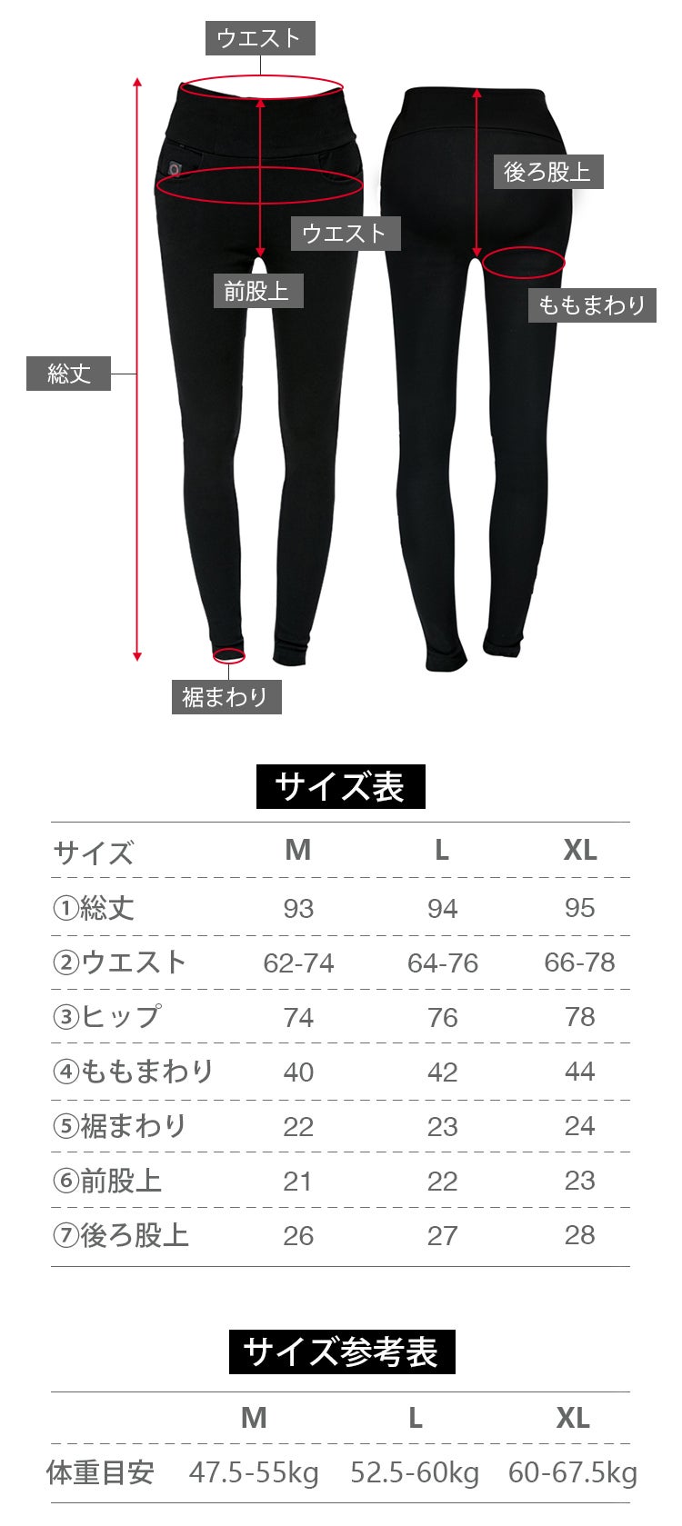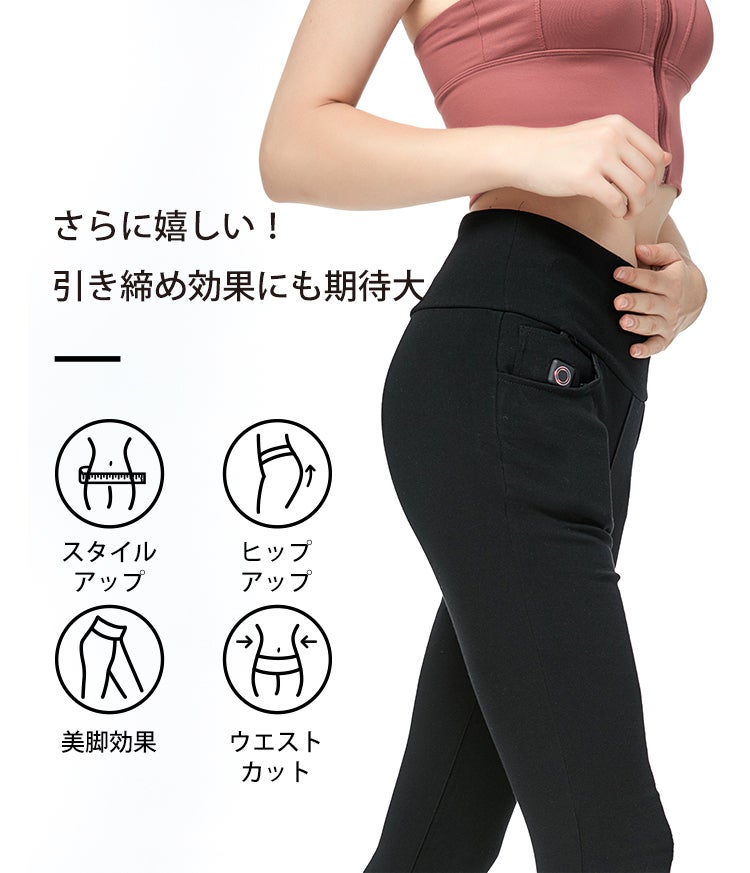放熱シートが内蔵されているため、必然的にウエスト位置は高め。腰の位置をあげ、くびれを強調させてくれます。さらに抜群の伸縮性で、ヒップアップ効果にも期待大。お尻・太ももを引き締め、美脚を演出♪
