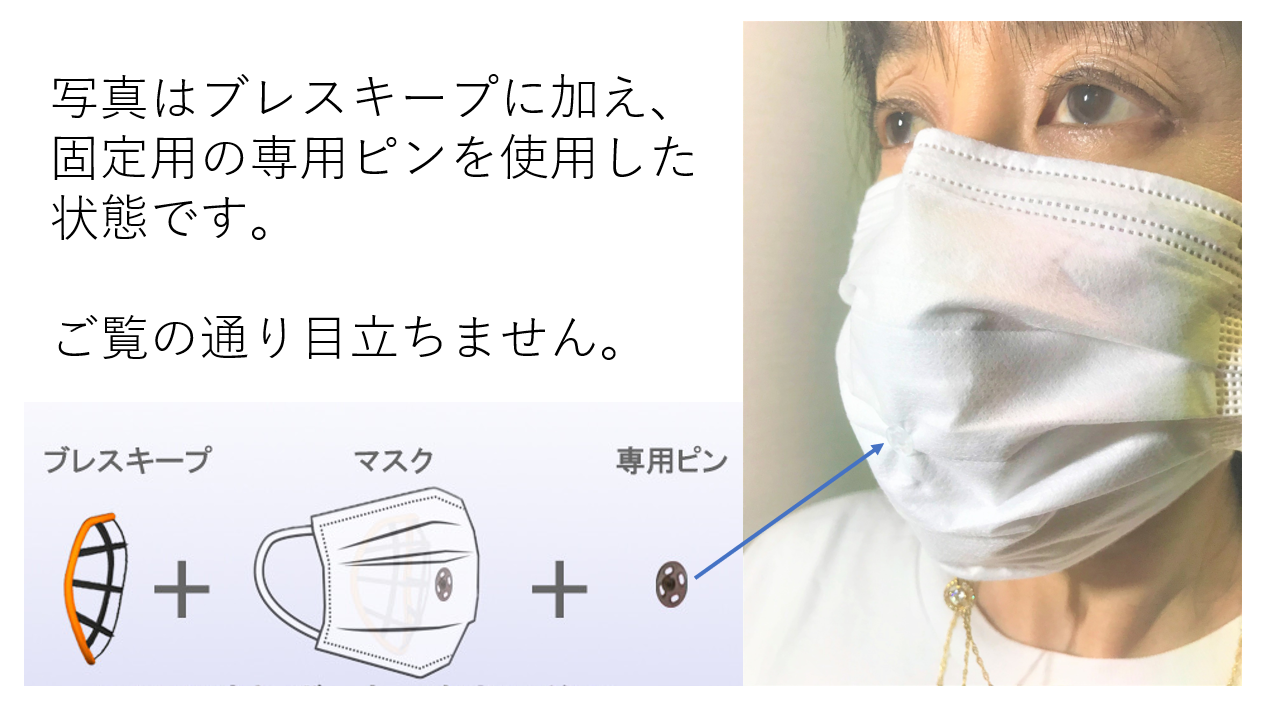 また、さらに確実に着用したい方は、付属の専用ピンを使用することにより、マスクとしっかり固定することができます。