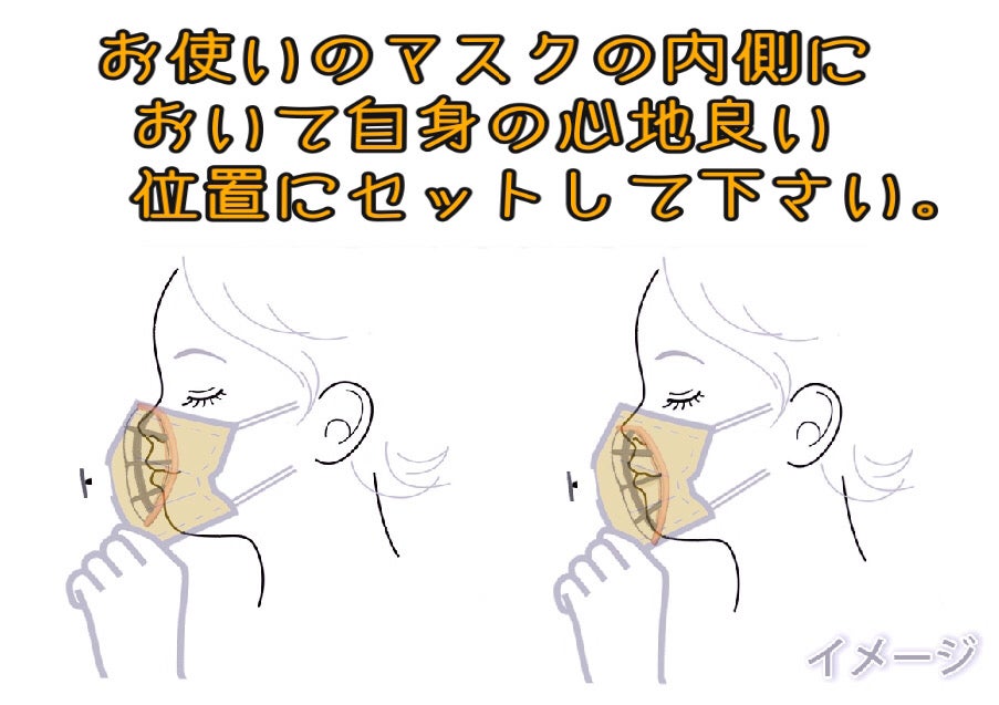 ブレスキープはマスクの内側にセットし、口と鼻を覆うようにして使用します。