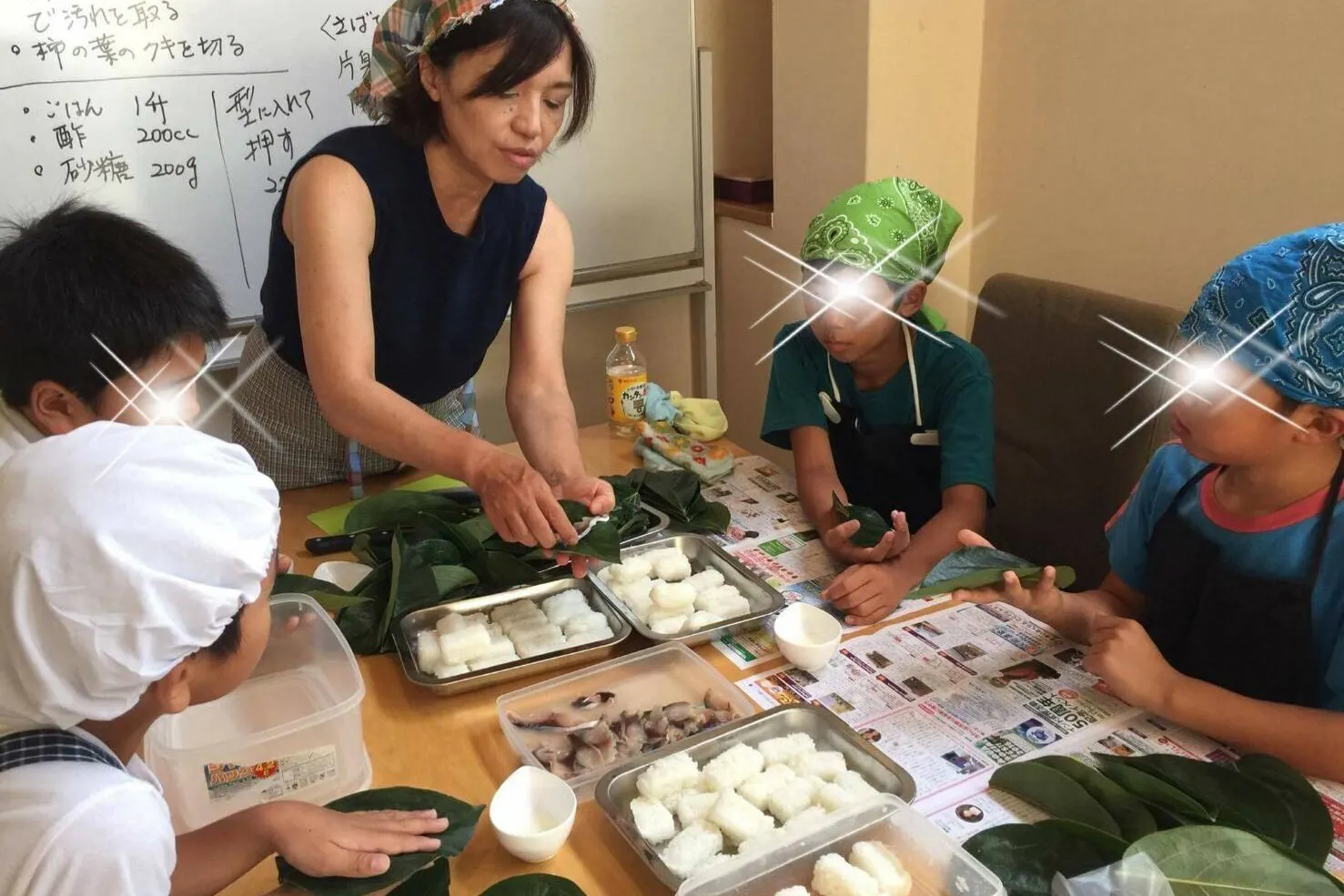 日本の古来より伝わる伝統食でもある柿の葉寿司を通じて、添加物を一切使わない「安心・安全な食文化を伝えていきたい」との考えのもとに、県内外を問わず各地でワークショップをさせていただき、昨年は県立高校の家庭科の授業でも取り入れていただき、60人の生徒さんと共に楽しく伝統食を学び食育のお話をすることもできました。