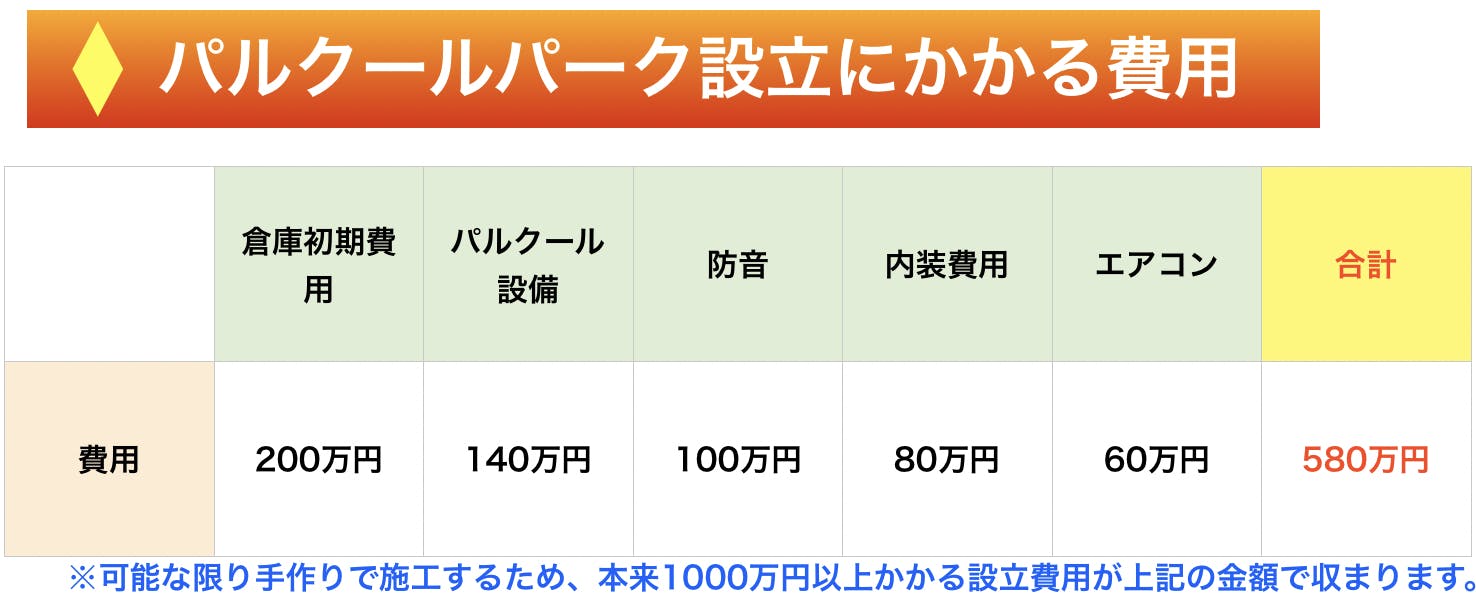 倉庫の壁全面に敷き詰める吸音材の購入、床にはゴムマットを敷き詰め、防音と着地の衝撃を和らげる効果を持たせます。