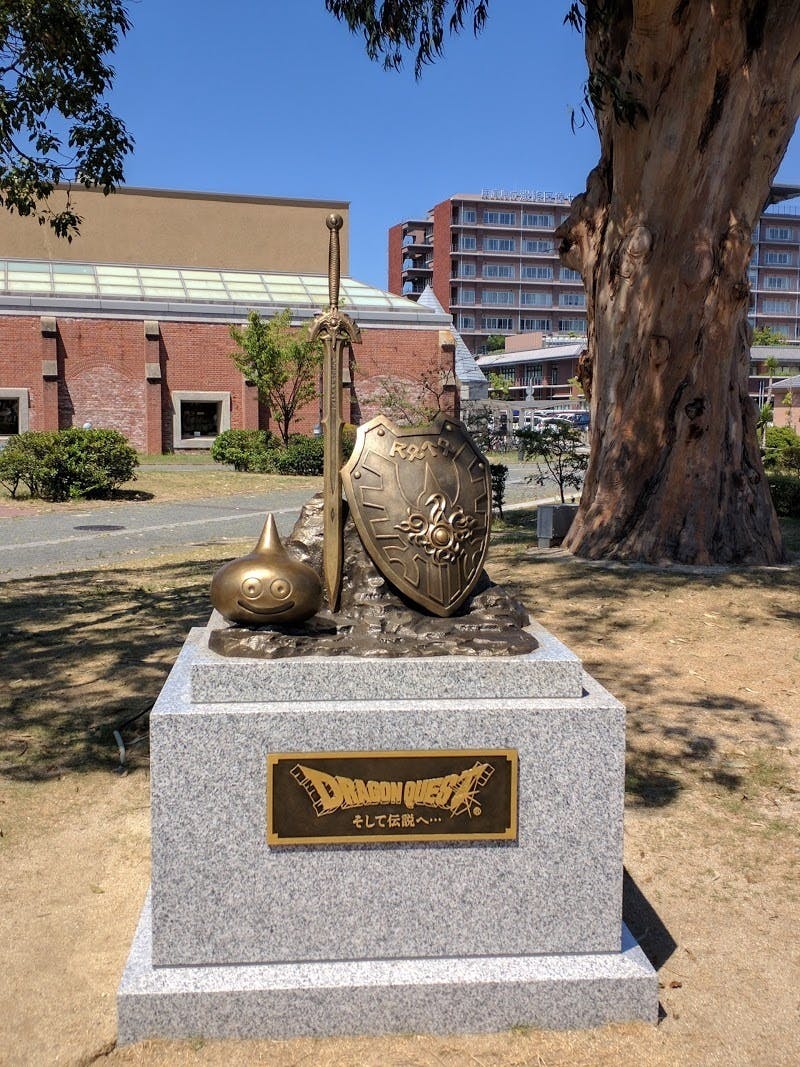 大きな木が目印の兵庫県洲本市にある都市公園。園内には赤レンガ建築の図書館やレストランなどがあります。ドラゴンクエスト生みの親である堀井雄二氏が洲本市出身ということもありドラクエの像が広場に設置されていて、観光のホットスポットとなっています。