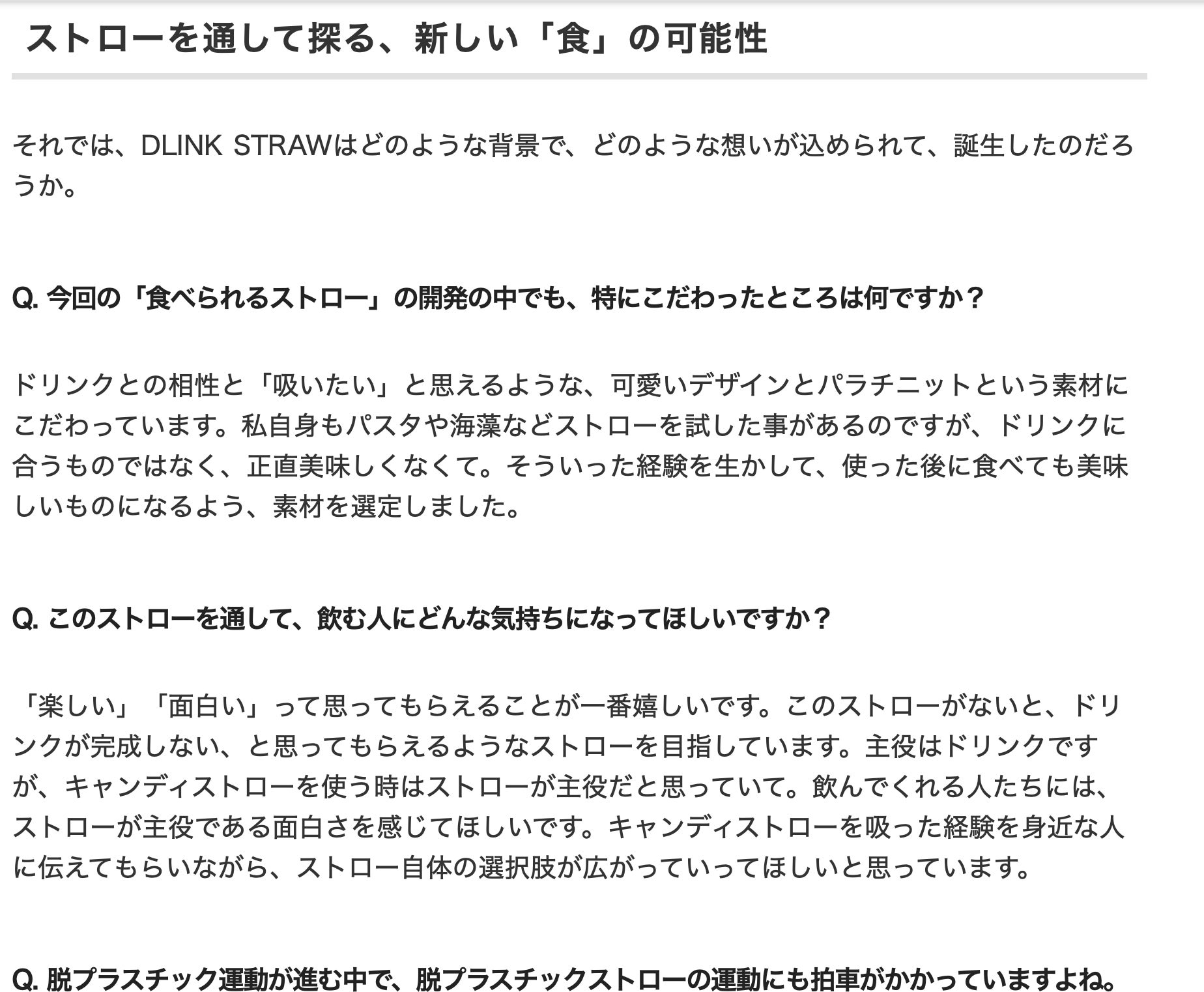 「ストローって最近使いづらい。」「ストローはなくてもいいのでは?」と思っている方に、届いてほしいインタビュー記事になったと感じます!