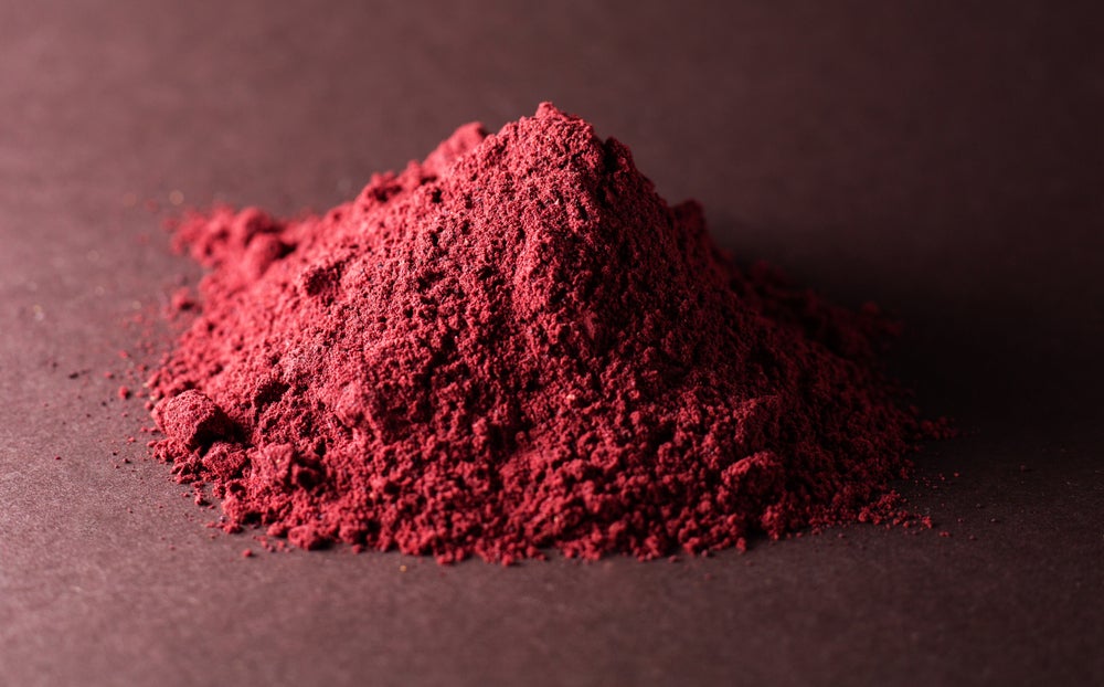 ビートルートを凝縮して粉末にしても、当然真っ赤な色です。