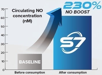 S7を使用した臨床試験ではS7服用後に体のめぐりを促進する一酸化窒素の体内量が230%まで上昇する効果が確認されました。