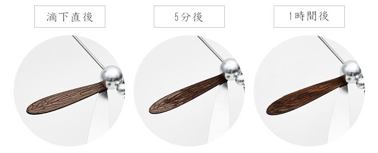 使い方はとっても簡単。尾の部分にアロマオイルを数滴垂らすと、時間が経つにつれオイルが前方に流れ、木製の羽にゆっくりと染みていきます。