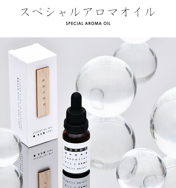 「香り蜻蛉」のために調合された、スペシャルアロマオイルが付属。森の香りをイメージした、爽やかな香りの空間を演出します。