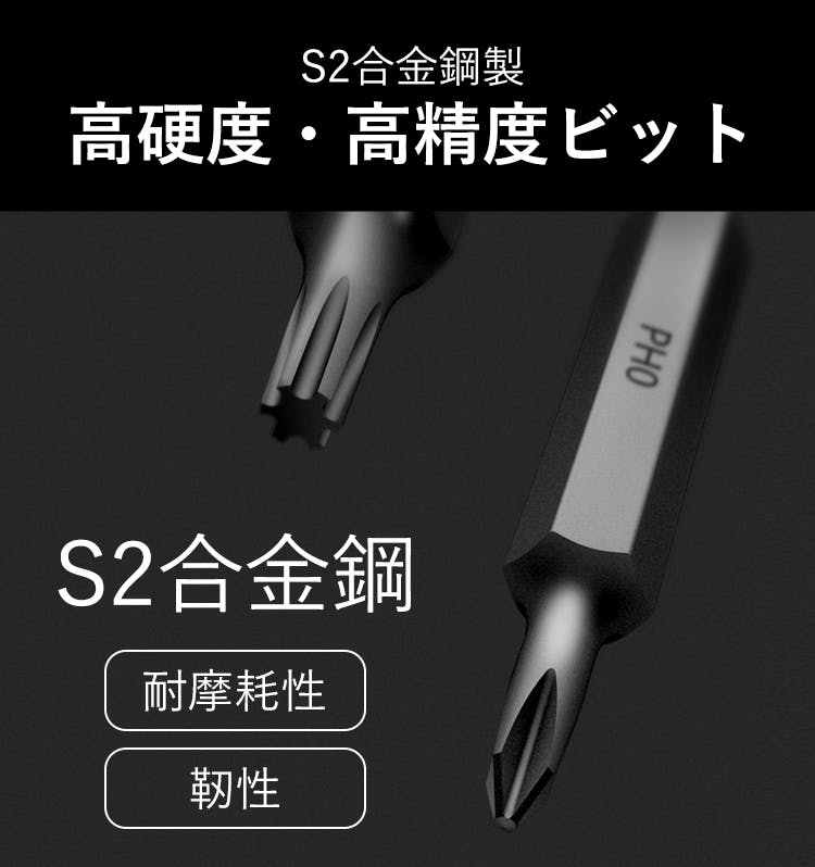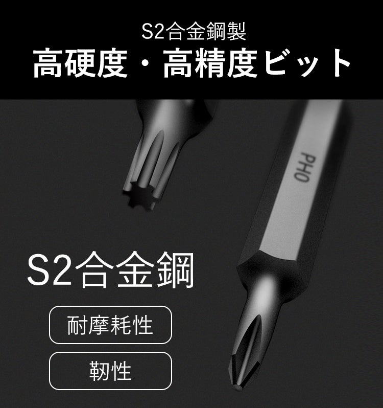 「WOWSTICK 」のビット素材には、特殊なサビ防止処理を施したS2合金鋼を採用。