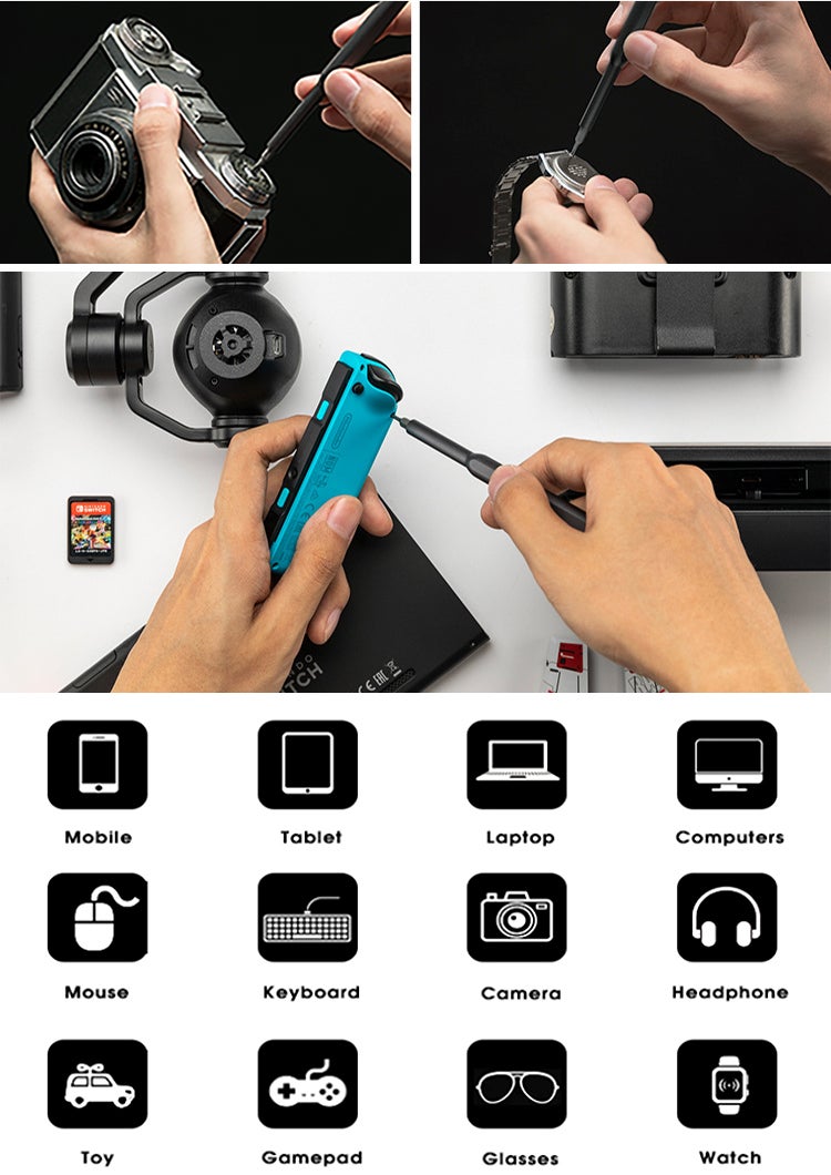 腕時計、メガネ、カメラ、ラジオ、パソコンなど、電子製品や家電、アクセサリーの修理に便利な、精密ドライバー。