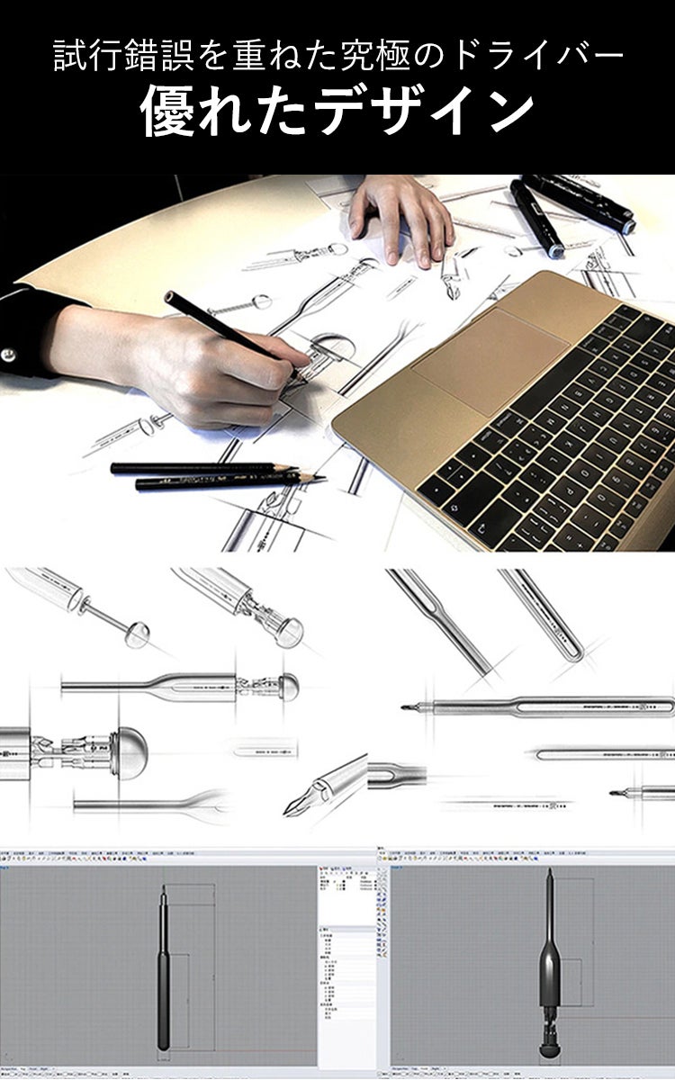 究極のドライバーを生み出すため、実用性とデザイン性を兼ね備えたフォルムを日々研究。何パターンもの試作品テストを行い、最終的に製品化されたのが、この「WOWSTICK 」なのです!