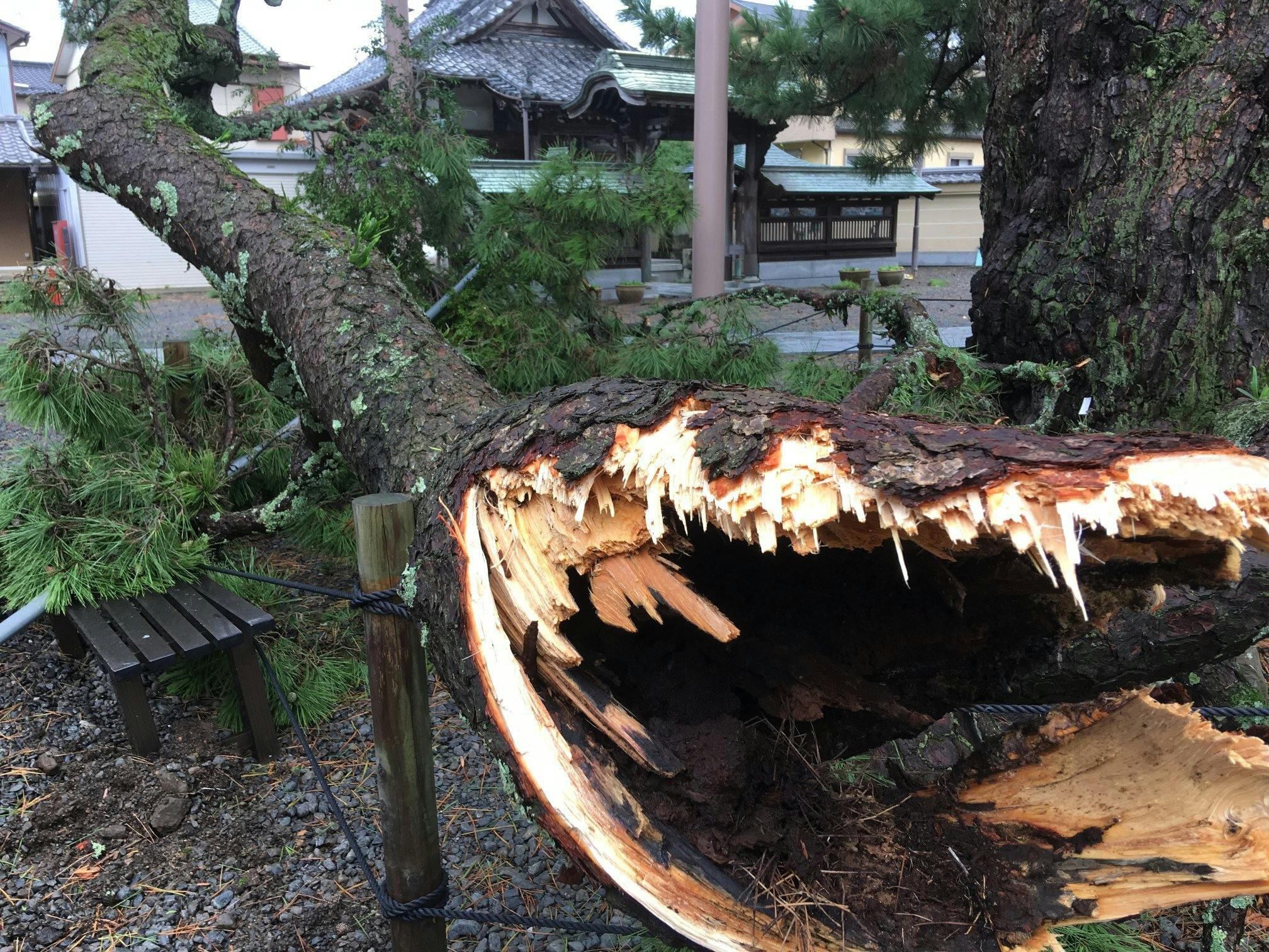 「逆走台風」などと呼ばれ話題になった台風12号が静岡県を襲いました。県内各地で甚大な被害がでましたが、大慶寺も例に漏れず、久遠の松のメインの枝の一部が折れてしまいました。