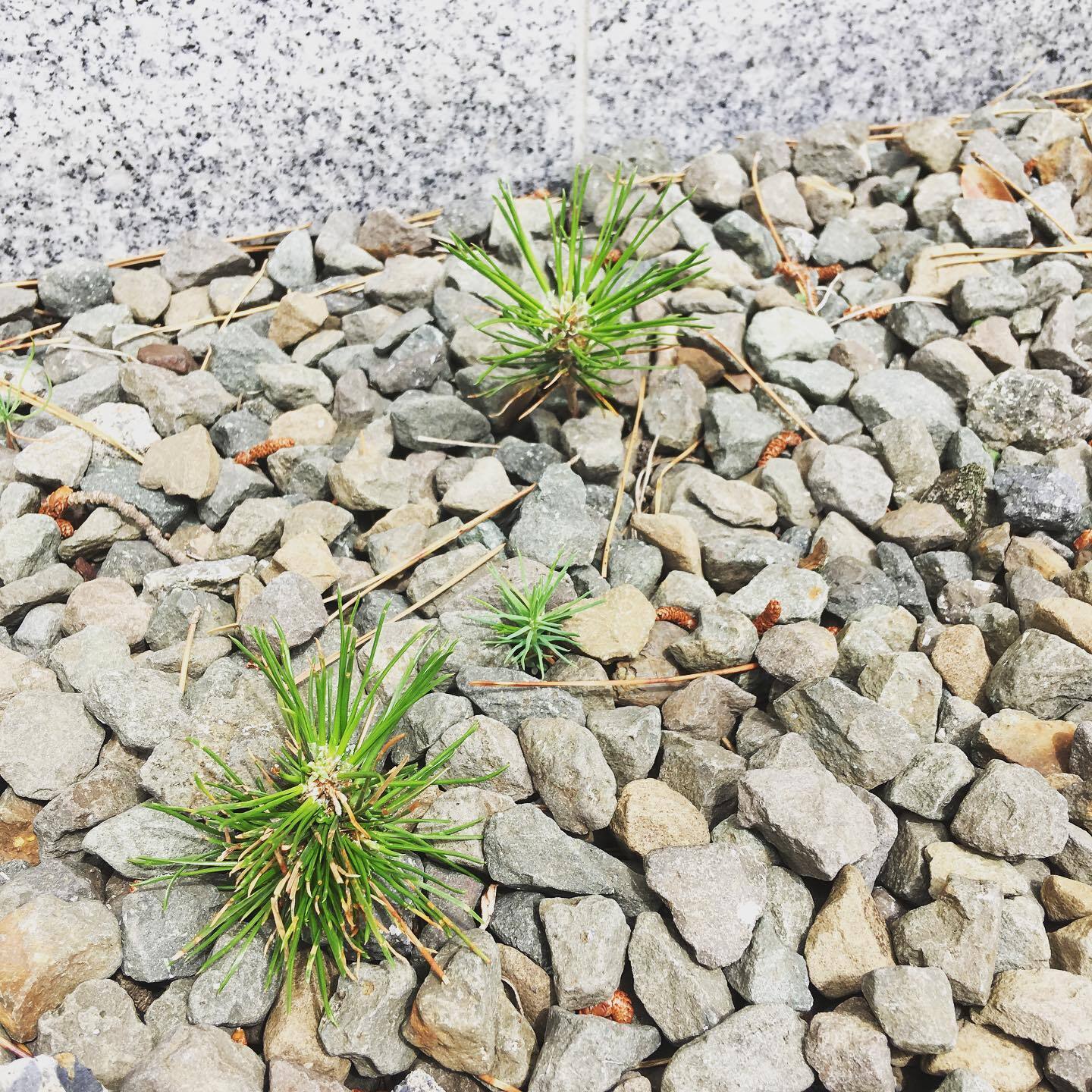境内を目をこらしてよく見ると、久遠の松の芽が出てきている。