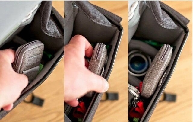 CAMSLINGER Outdoor(カムスリンガーアウトドア)は、予備のバッテリー、SDカードなどのアクセサリ用に多くのスペースが備わっています。6つのコンパートメントディバイダーにより、必要に合わせて内部をカスタマイズできます。