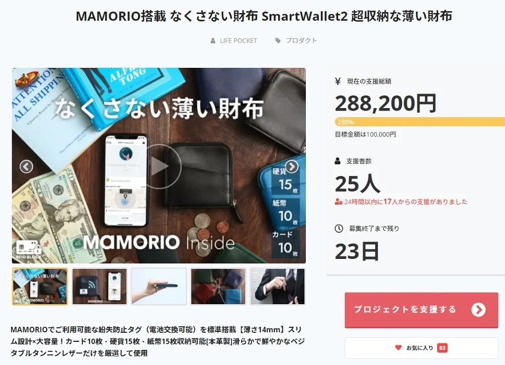 このたびは「MAMORIO搭載 なくさない薄い財布 SmartWallet2」のプロジェクトにご支援をいただき、ありがとう御座います。