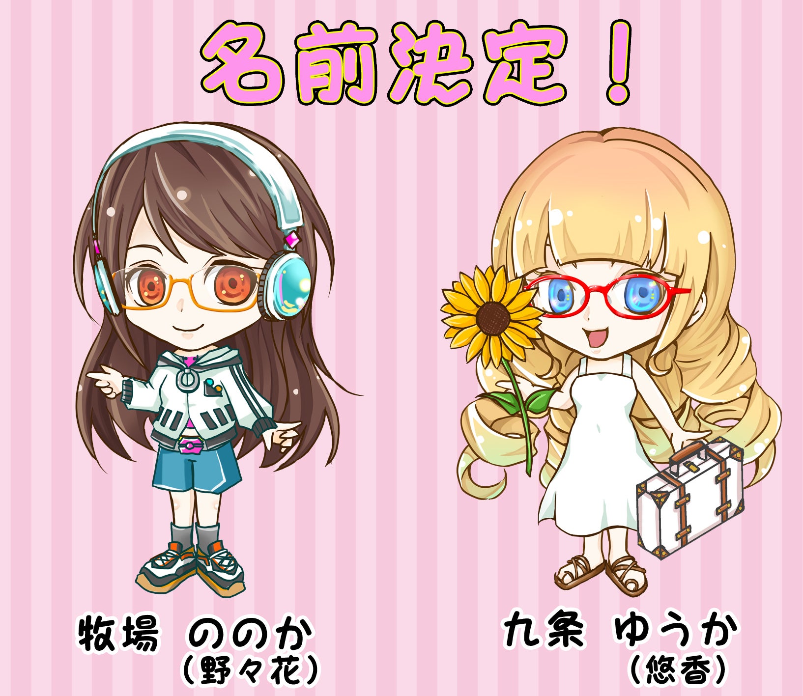 こんにちは!めがぷろ!支援プロジェクトのオーナー秋葉原集会所ゲームズデザイナーのてんちょうです。10月4日まで受け付けていました「命名権プラン」の支援者様により、女の子に名前が決定しましたのでご報告いたします!まずはデザイナー通称「ロング子」(ロング子 素の姿)こちら牧場ののか(野々花)と命名されました!可愛らしいイメージの良い名前をつけて頂きありがとうございます!実際のゲーム画面ではこんな感じで表記されます。そして、デザイナー通称「お嬢様」(お嬢様素の姿)こちらは九条ゆうか(悠香)と命名されました!高貴すぎず、そしてどこか漂う高級感あふれる良い名前を頂けました!ありがとうございます!実際のゲームではこんな感じで表記されます!命名権プランは終了となりましたが、システム上支援できるようになっております。名前を付ける事は出来ませんのでご注意ください。今後もよろしくお願いします!